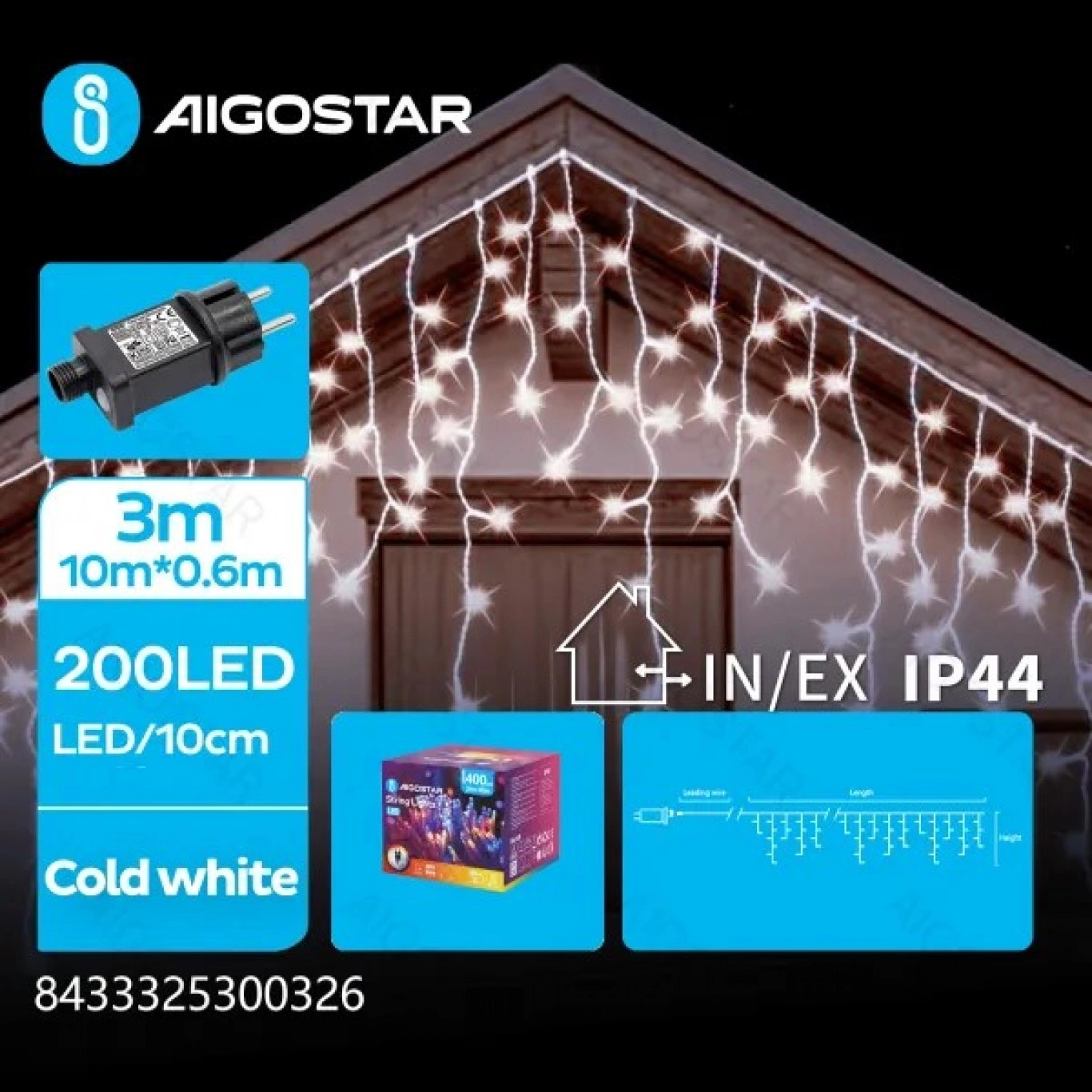 Χριστουγεννιάτικα Λαμπάκια Βροχή Ρεύματος με Διάφανο Καλώδιο 10×0,6m με Ψυχρό Λευκό Φωτισμό και 8 Προγράμματα Λειτουργίας 30032