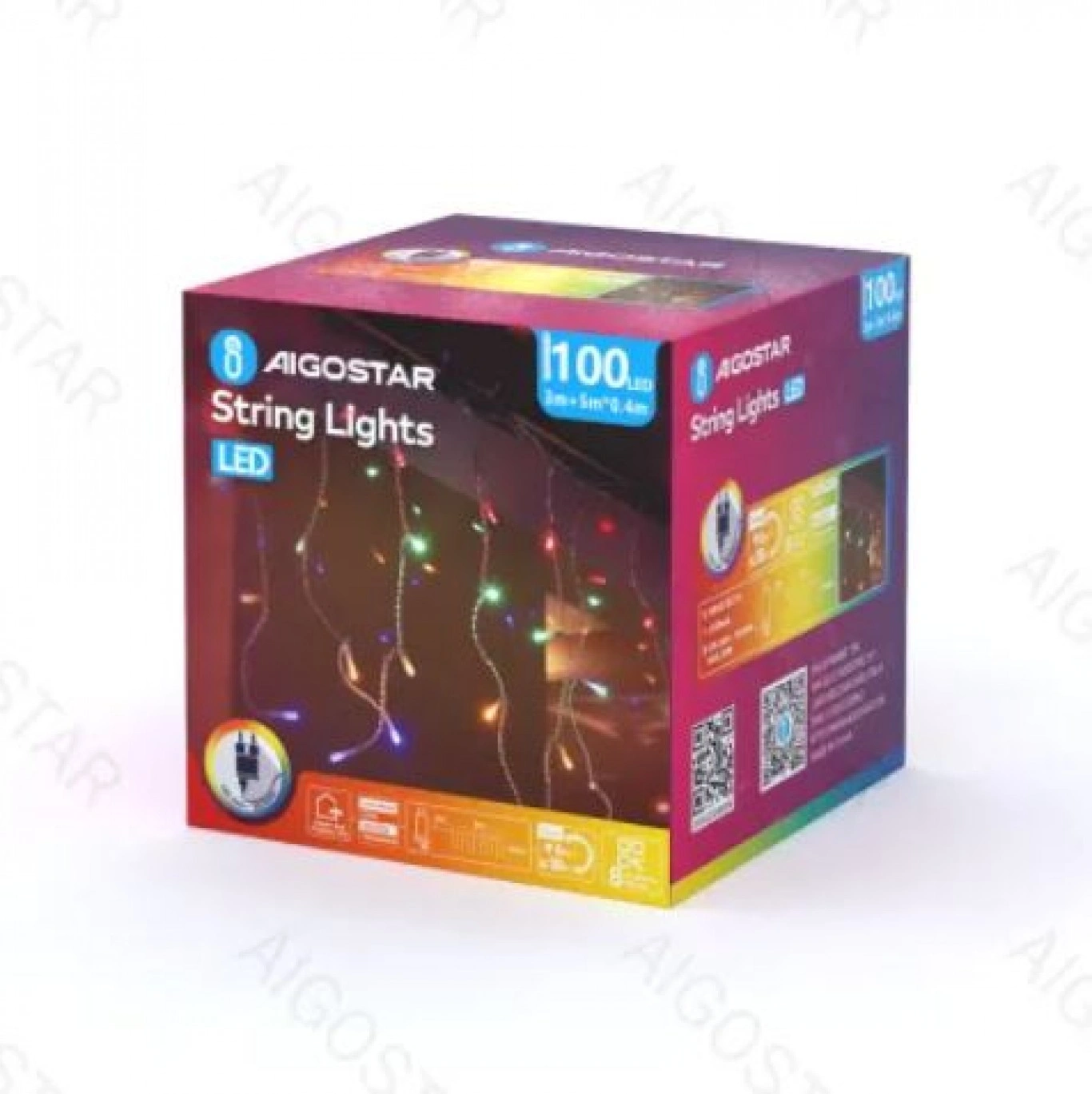 Χριστουγεννιάτικα Λαμπάκια Βροχή Ρεύματος με Διάφανο Καλώδιο 5×0,4m με Πολύχρωμο Φωτισμό και 8 Προγράμματα Λειτουργίας 30023