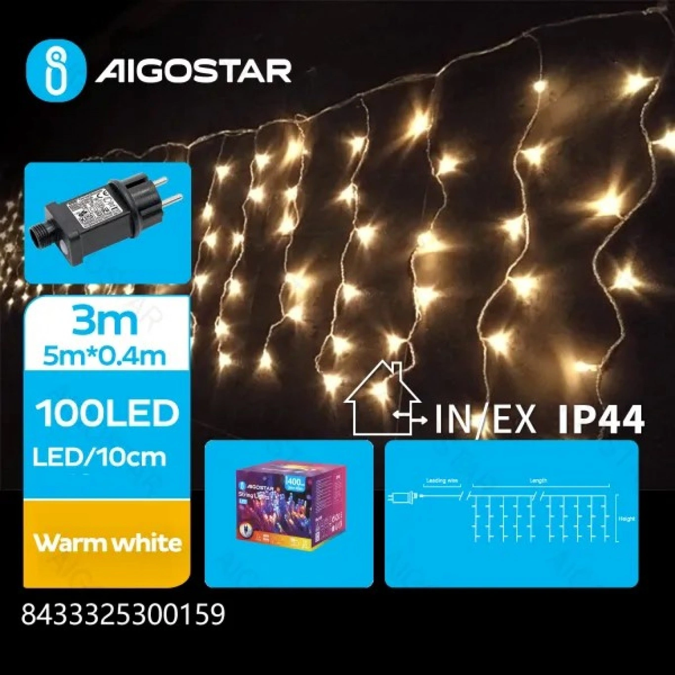 Αυτή η χριστουγεννιάτικη βροχή LED είναι ιδανική για διακόσμηση παραθύρων, τοίχων, και εξωτερικών χώρων.