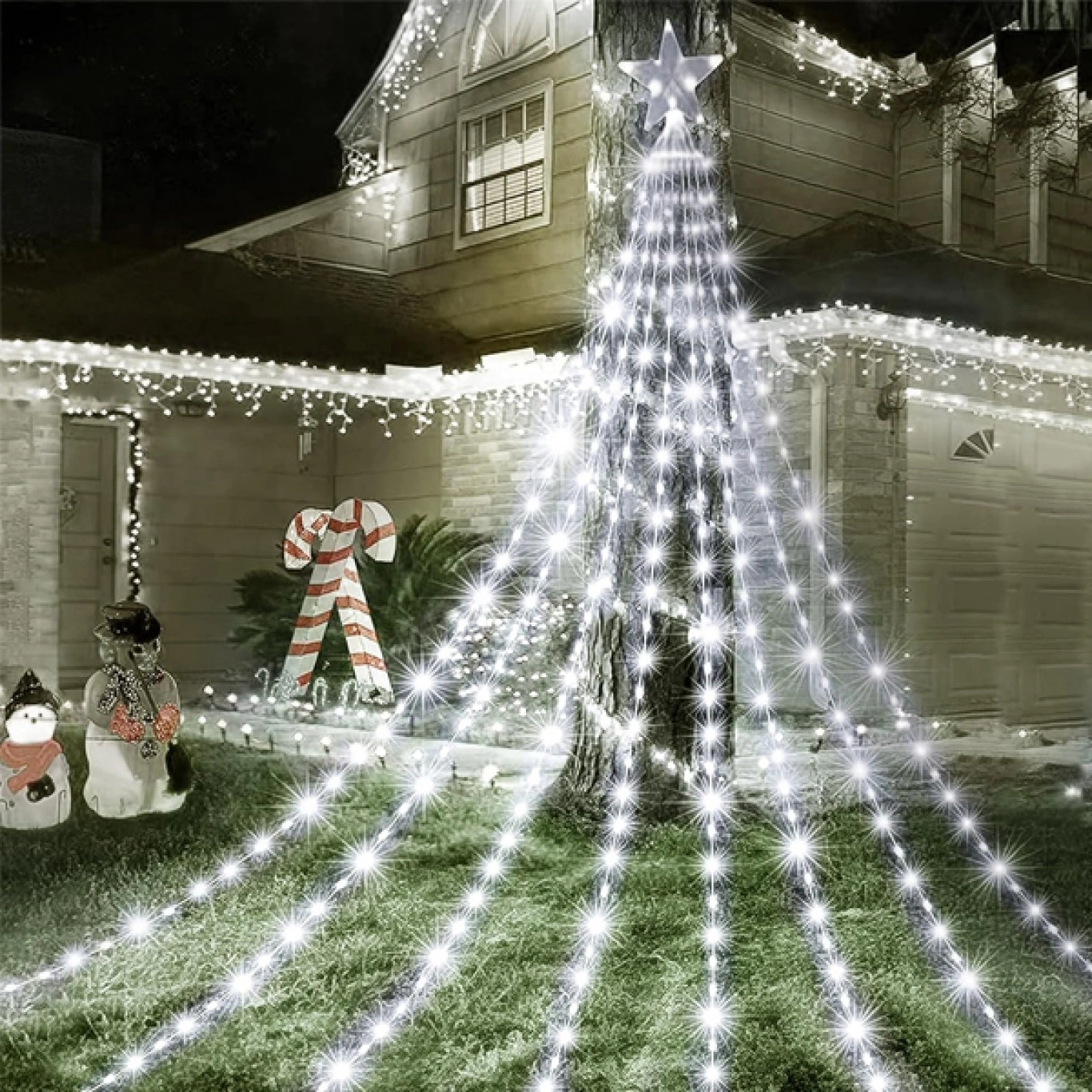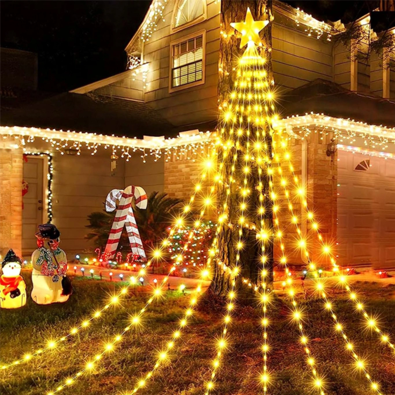 Μεταμορφώστε τον κήπο, την αυλή, τη βεράντα σας σε έναν εορταστικό χώρο με τα Χριστουγεννιάτικα LED Φωτάκια Εξωτερικού Χώρου σε Σχήμα Δέντρου με Αστέρι.