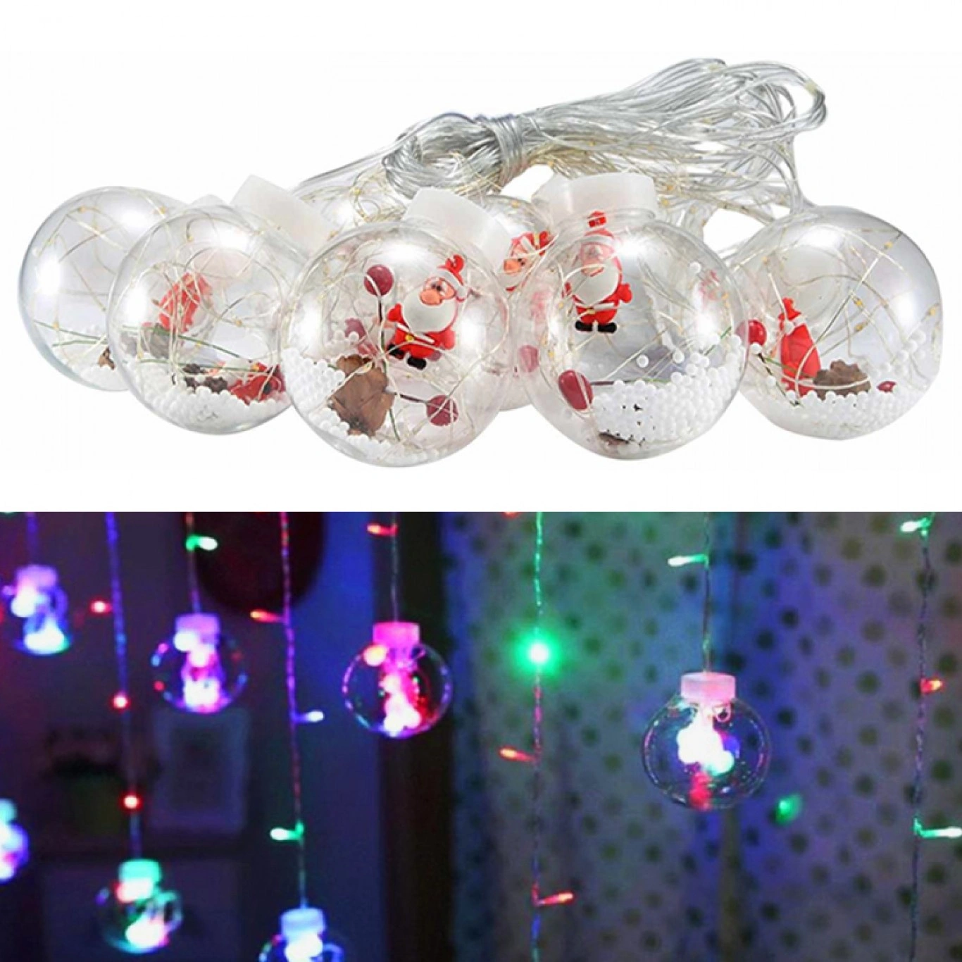 Χριστουγεννιάτικη Κουρτίνα – Φωτάκια Άγιος Βασίλης με 10 Διάφανες Μπάλες RGB Φωτισμού 3m – Curtain Light 10 Hangings