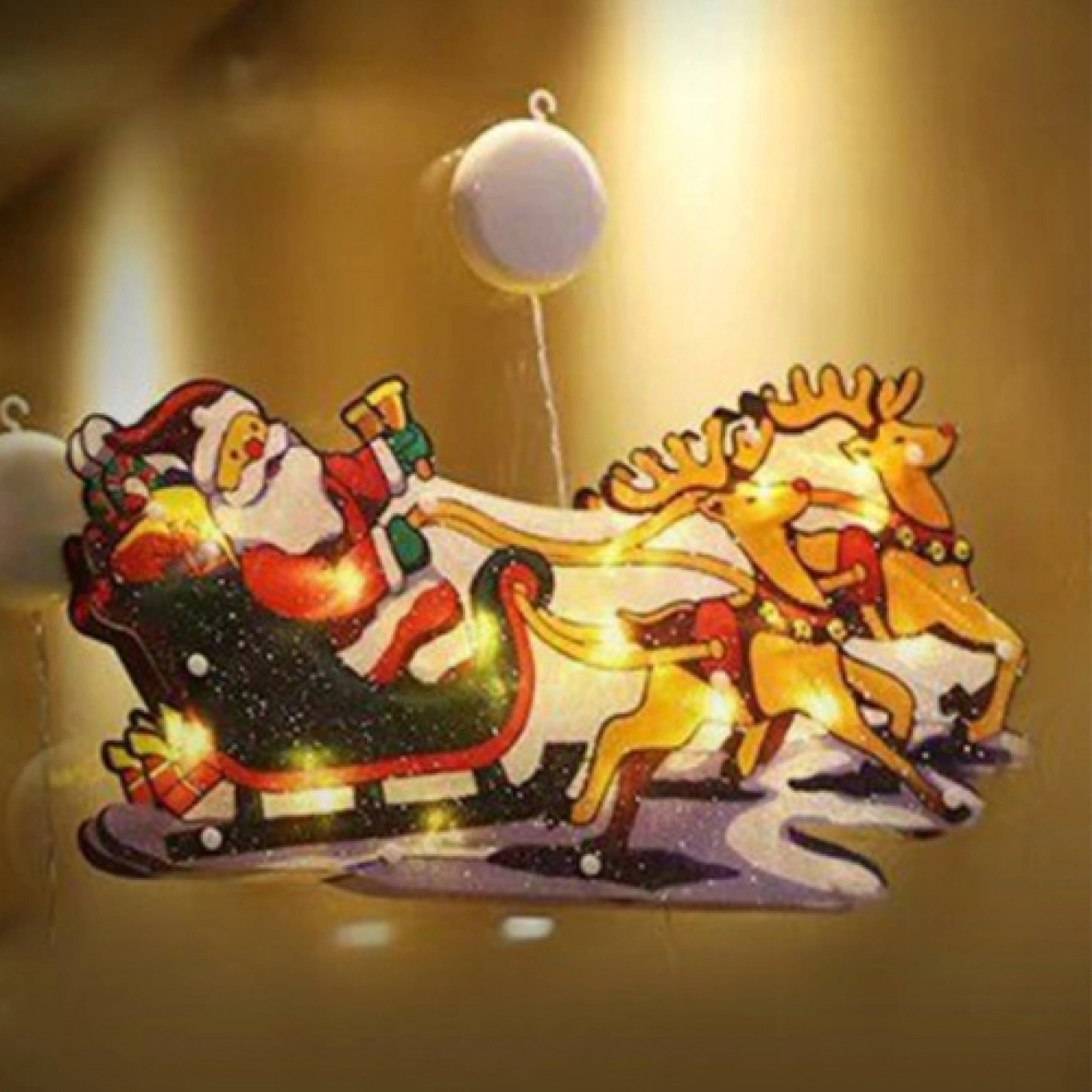 Χριστουγεννιάτικη Κρεμαστή Φιγούρα Αγιος Βασίλης σε Ελκυθρο και Ελάφια Μπαταρίας με Βεντούζα και 9 LED  25×13.4×2.6cm