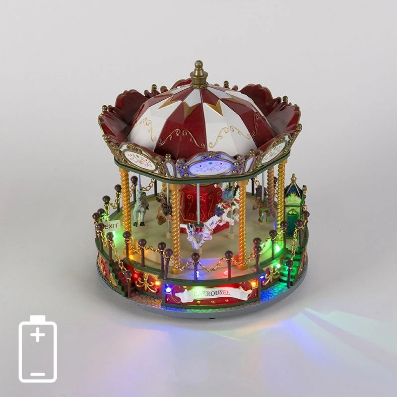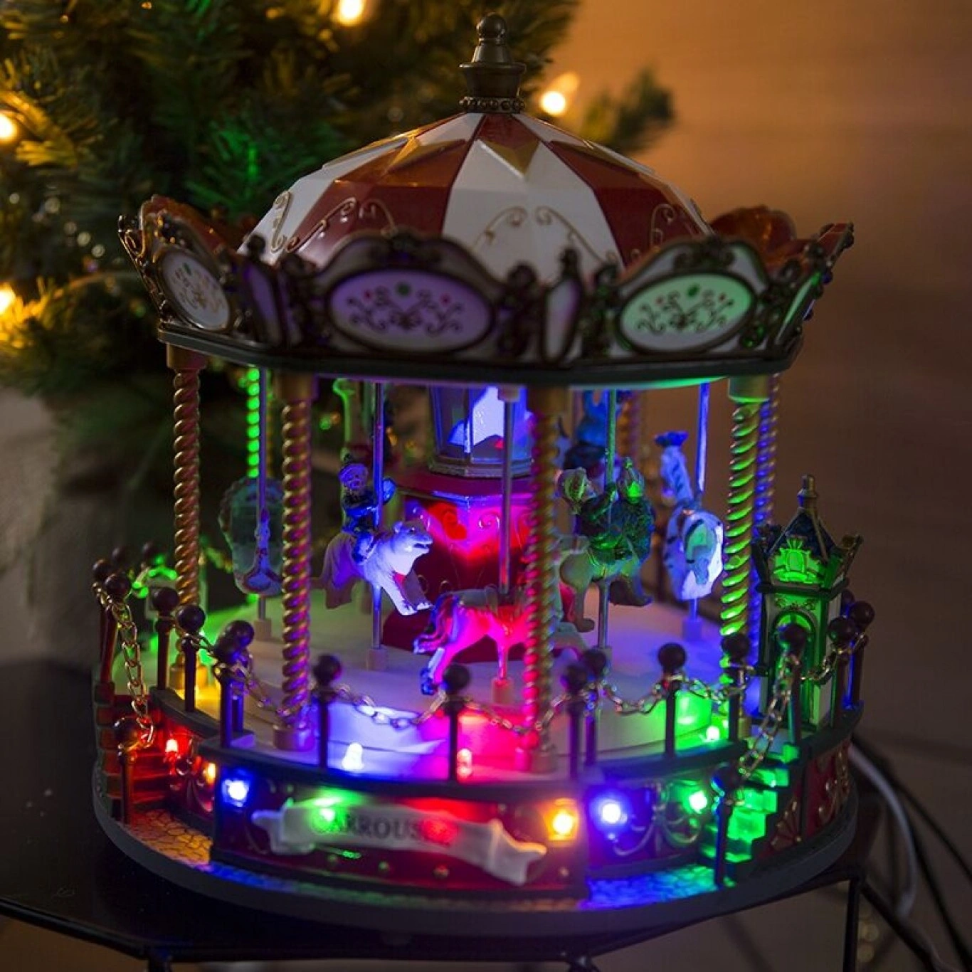 Δημιουργήστε τον δικό σας χριστουγεννιάτικο κόσμο με αυτό το παραμυθένιο, πολύχρωμο LED carousel.Διαθέτει διαφορετικά χρώματα ζεστού και λαμπερού φωτισμού LED, ενώ ταυτόχρονα η ωραία μουσική που θα ακούτε καθώς οι ποικίλες φιγούρες περιστρέφονται, θα βυθίσει εντελώς το σπίτι σας στην ατμόσφαιρα των Χριστουγέννων !Ιδανικό για διακόσμηση κάτω από το χριστουγεννιάτικο δέντρο, στον μπουφέ σας ή όπου αλλού εσείς επιθυμείτε.Αυτή η μικρογραφία μιας αληθινής Χριστουγεννιάτικης στιγμής δε θα αφήσει κανέναν ασυγκίνητο !