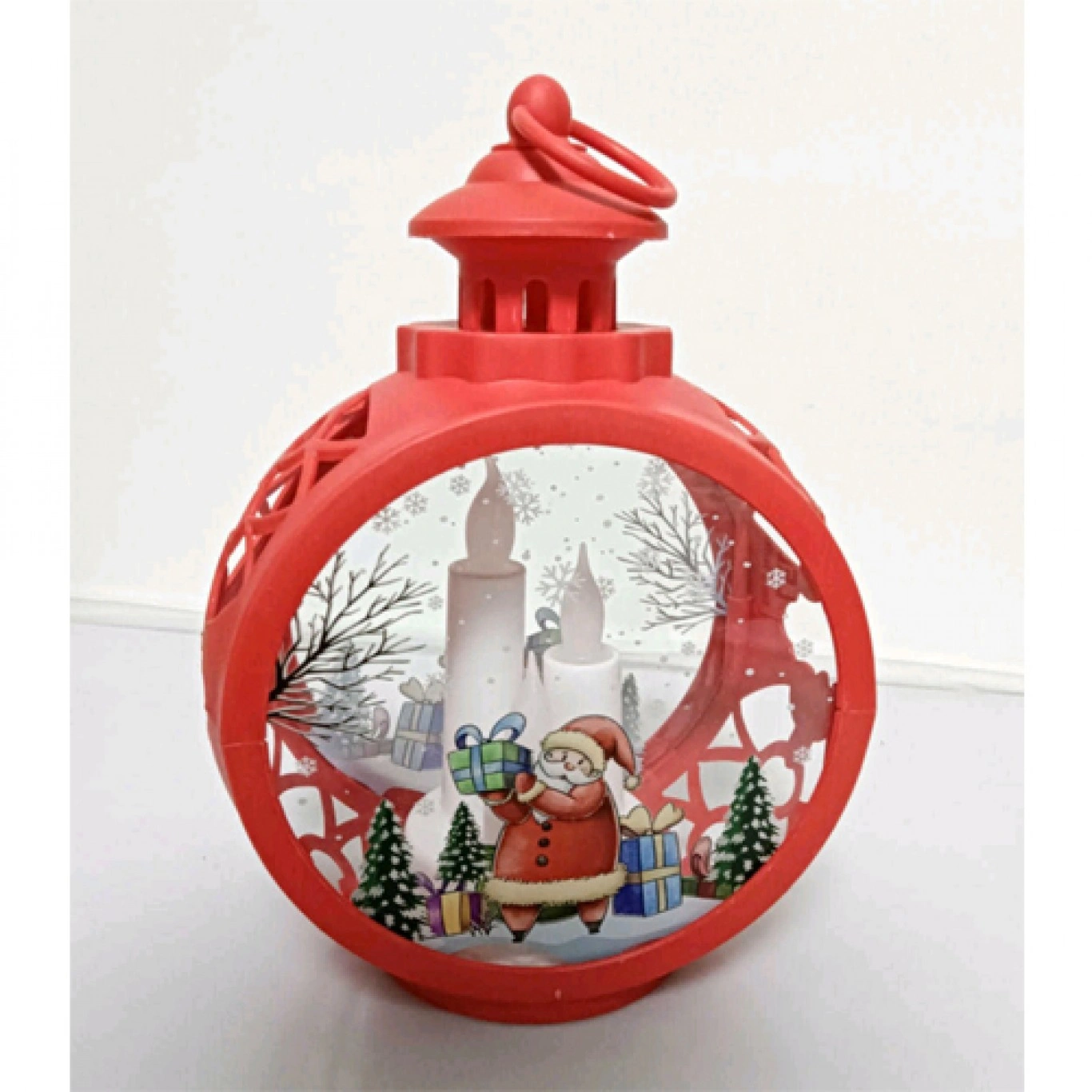 Χριστουγεννιάτικo Κόκκινο Κρεμαστό Φαναράκι, Στολίδι με τον Άγιο Βασίλη – LED.