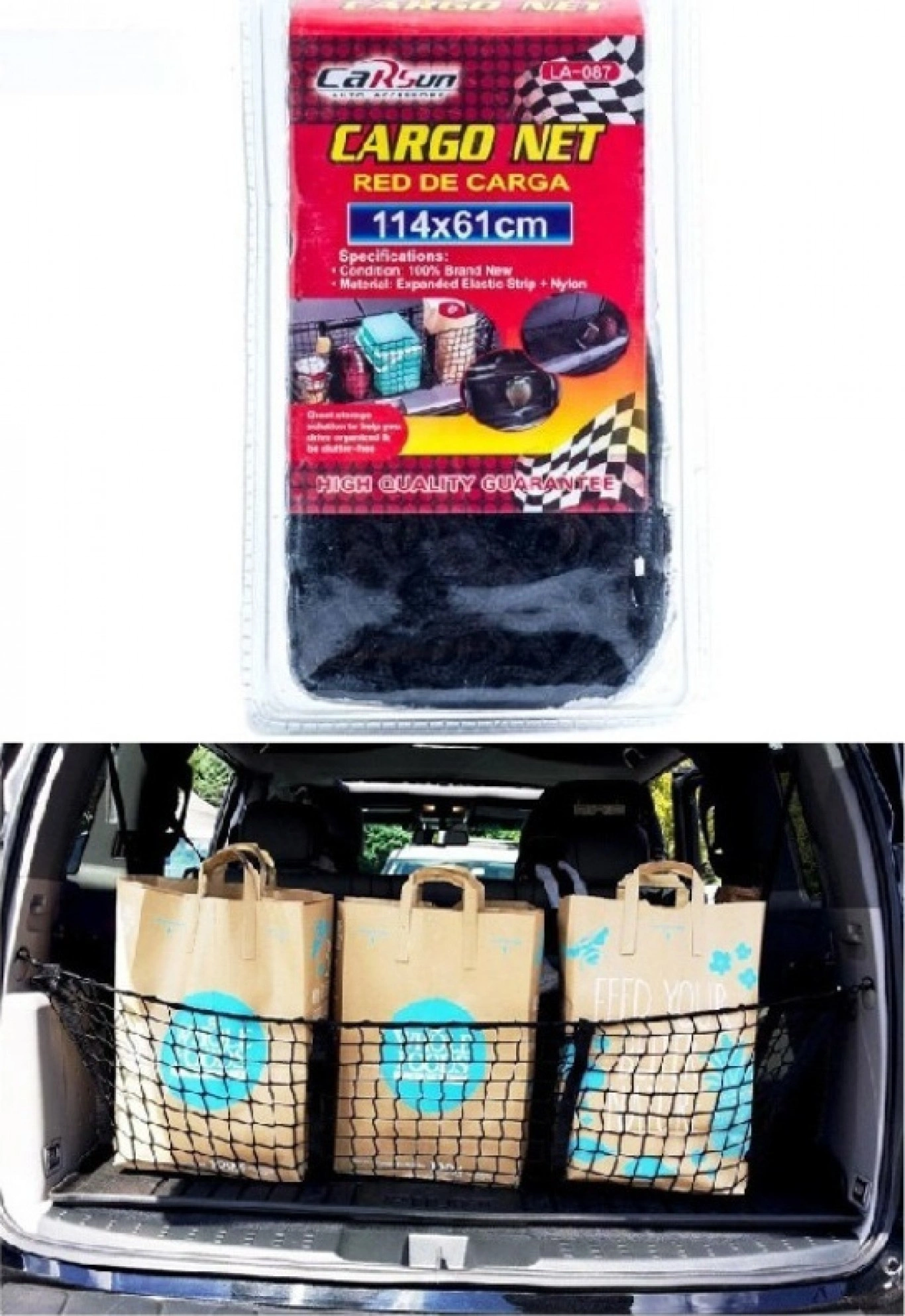 Διαχωριστικό δίχτυ Οργάνωσης και Αποθήκευσης πορτ-μπαγκάζ για όλα τα αυτοκίνητα. Ελαστικό, περιλαμβάνει 4 σημεία στήριξης με δύο δυνατότητες εγκατάστασης: κολλητική ταινία ή βίδες.