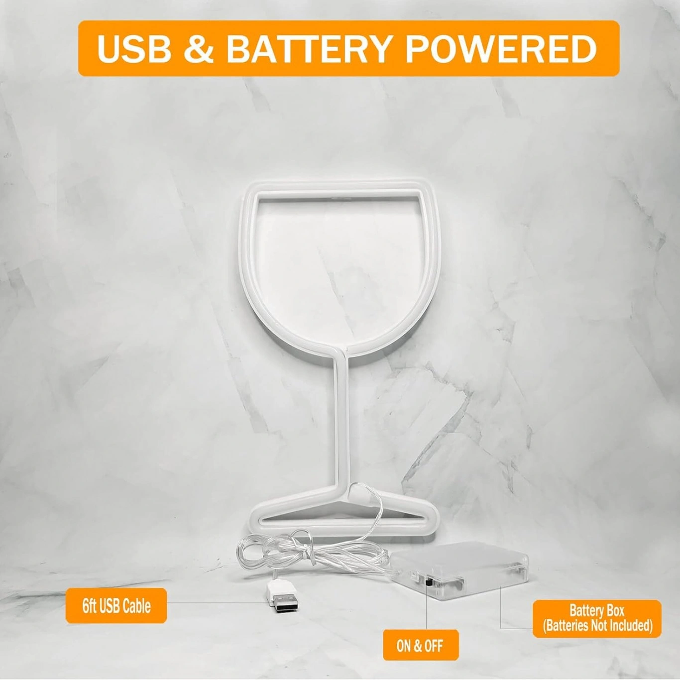 Διακοσμητικό NEON Φωτιστικό Ποτήρι Κρασιού – Decoration Lamp Wine Glass 26x14cm