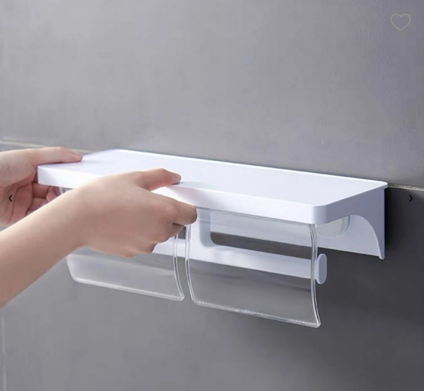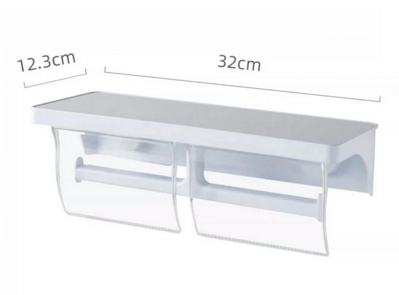 Πολλαπλής χρήσης, διπλή θήκη ρολού χαρτιού τουαλέτας με ράφι αποθήκευσης στην κορυφή. Κρατά δύο συνηθισμένα ρολά χαρτιού τουαλέτας και το ράφι είναι αρκετά μεγάλο για να χωρά διάφορα είδη όπως κινητό τηλέφωνο, προϊόντα περιποίησης, κουτιά με χαρτομάντηλα ή είδη διακόσμησης.