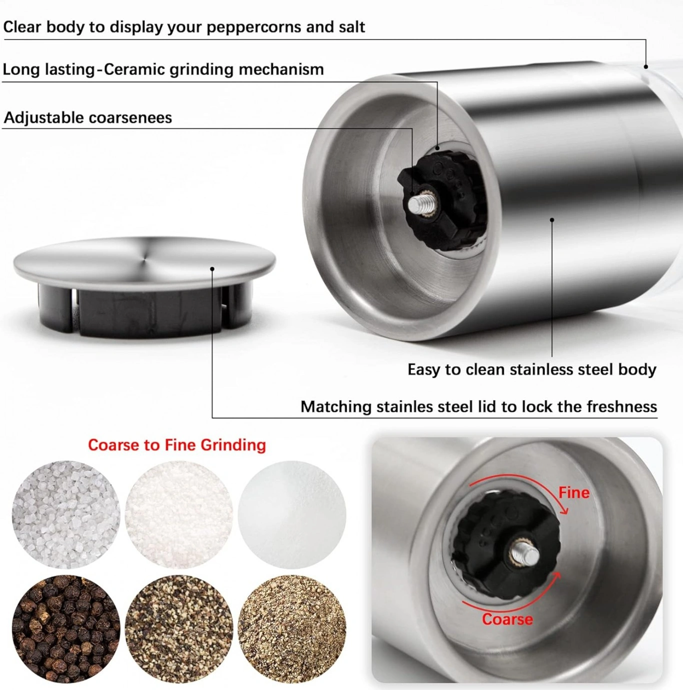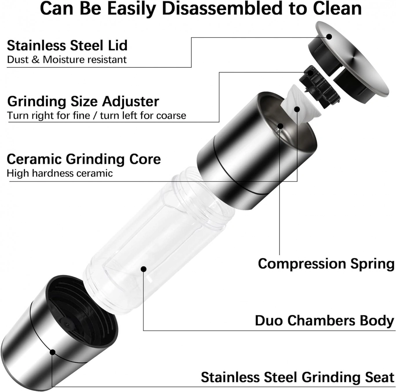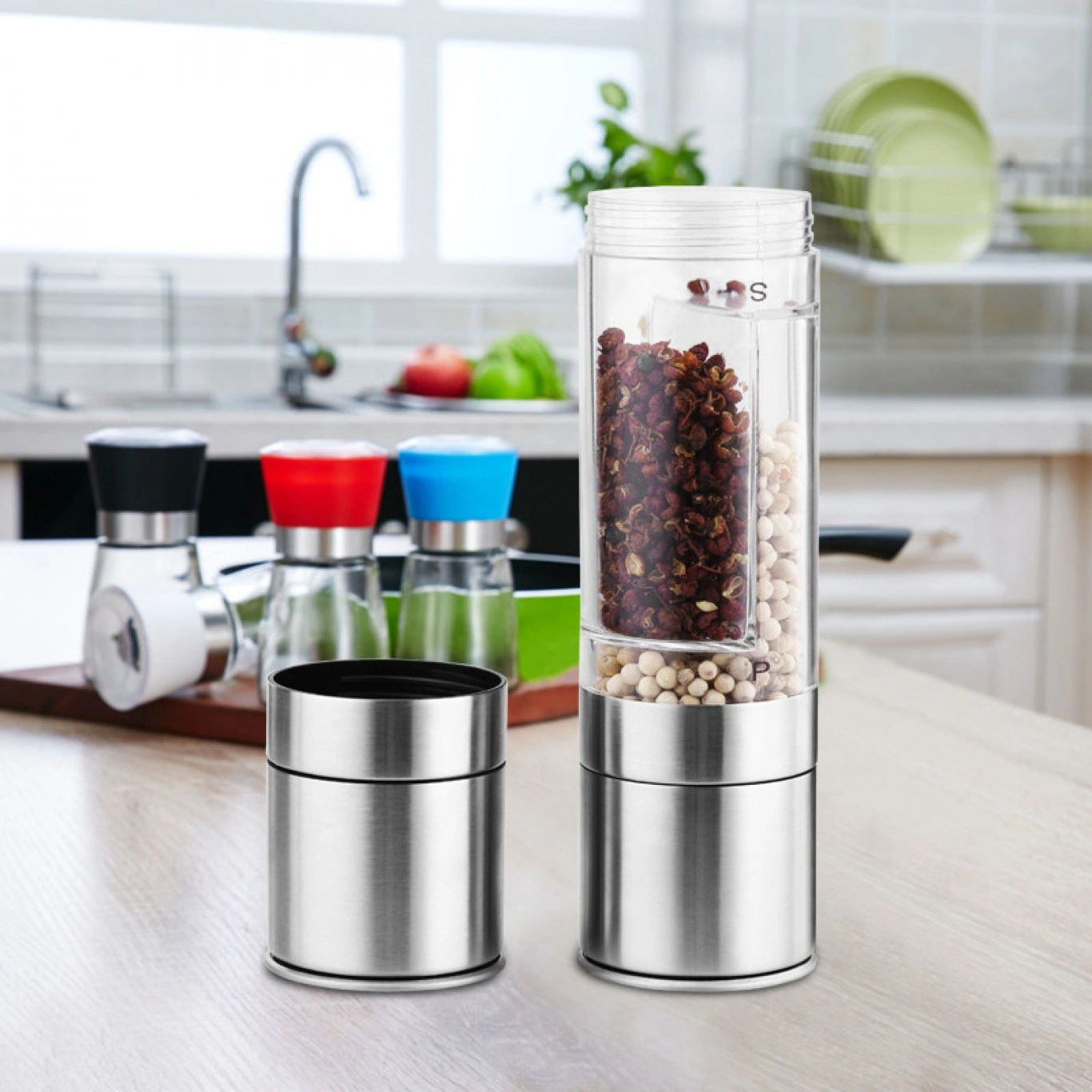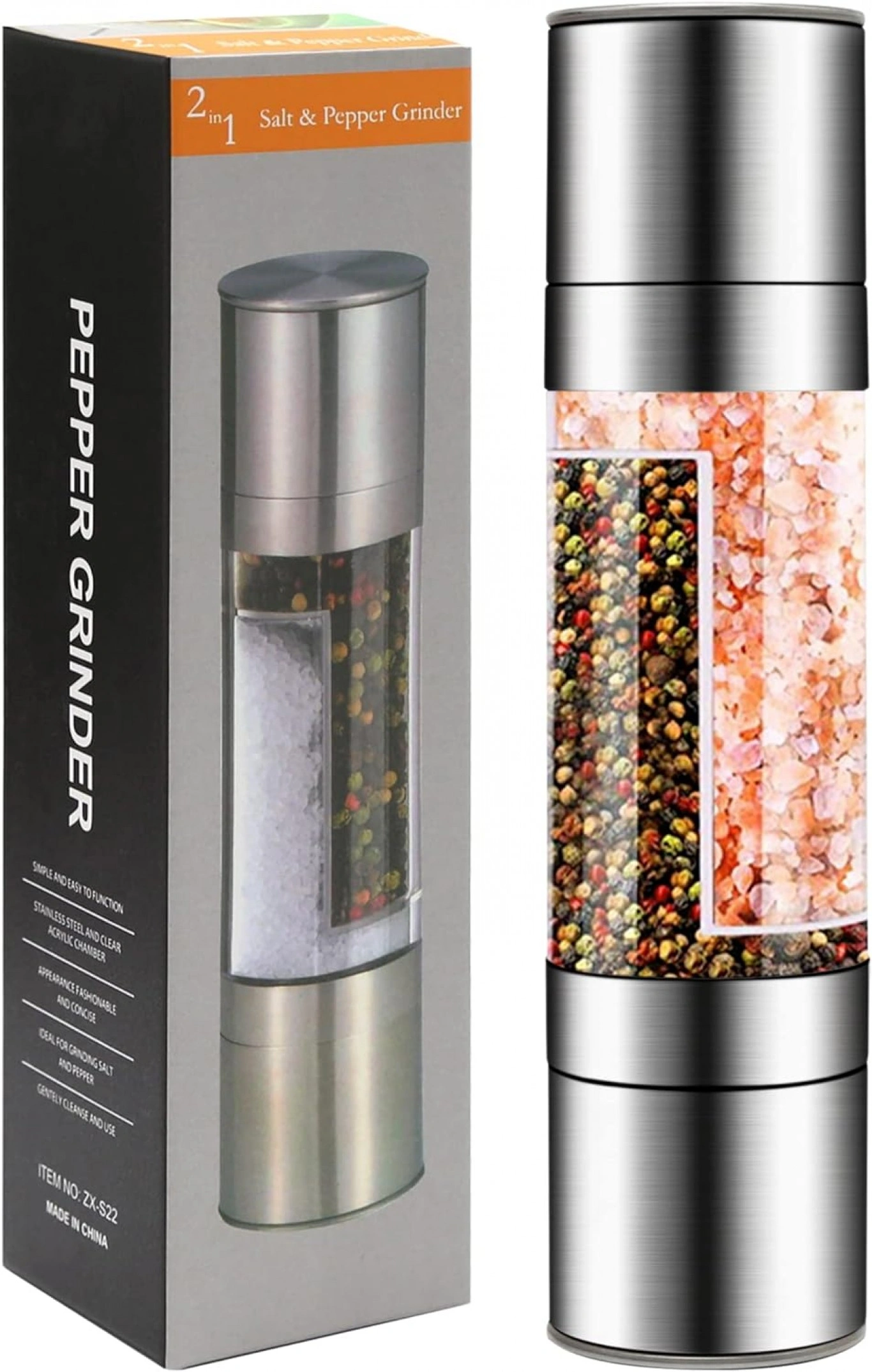 Με τη δυνατότητα να αλέσετε τόσο αλάτι όσο και πιπέρι με ένα μόνο εργαλείο, προσφέρει βελτιωμένη ευελιξία και εξοικονόμηση χώρου στην κουζίνα.