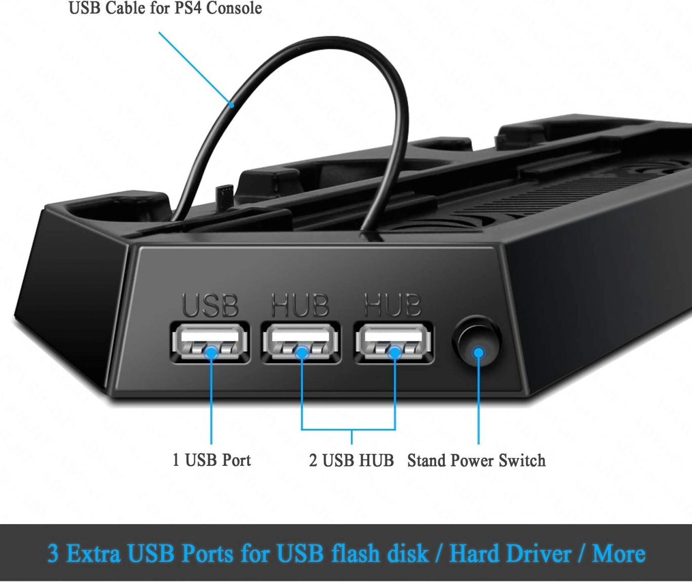 Υπερ βάση φόρτισης PS4! Μπορεί να φορτίσει έως και 2 τηλεχειριστήρια PS4 ταυτόχρονα αλλά ακόμα διαθέτει και 3 USB θύρες για φόρτιση του κινητού σας ή οποιασδήποτε άλλης συσκευής.