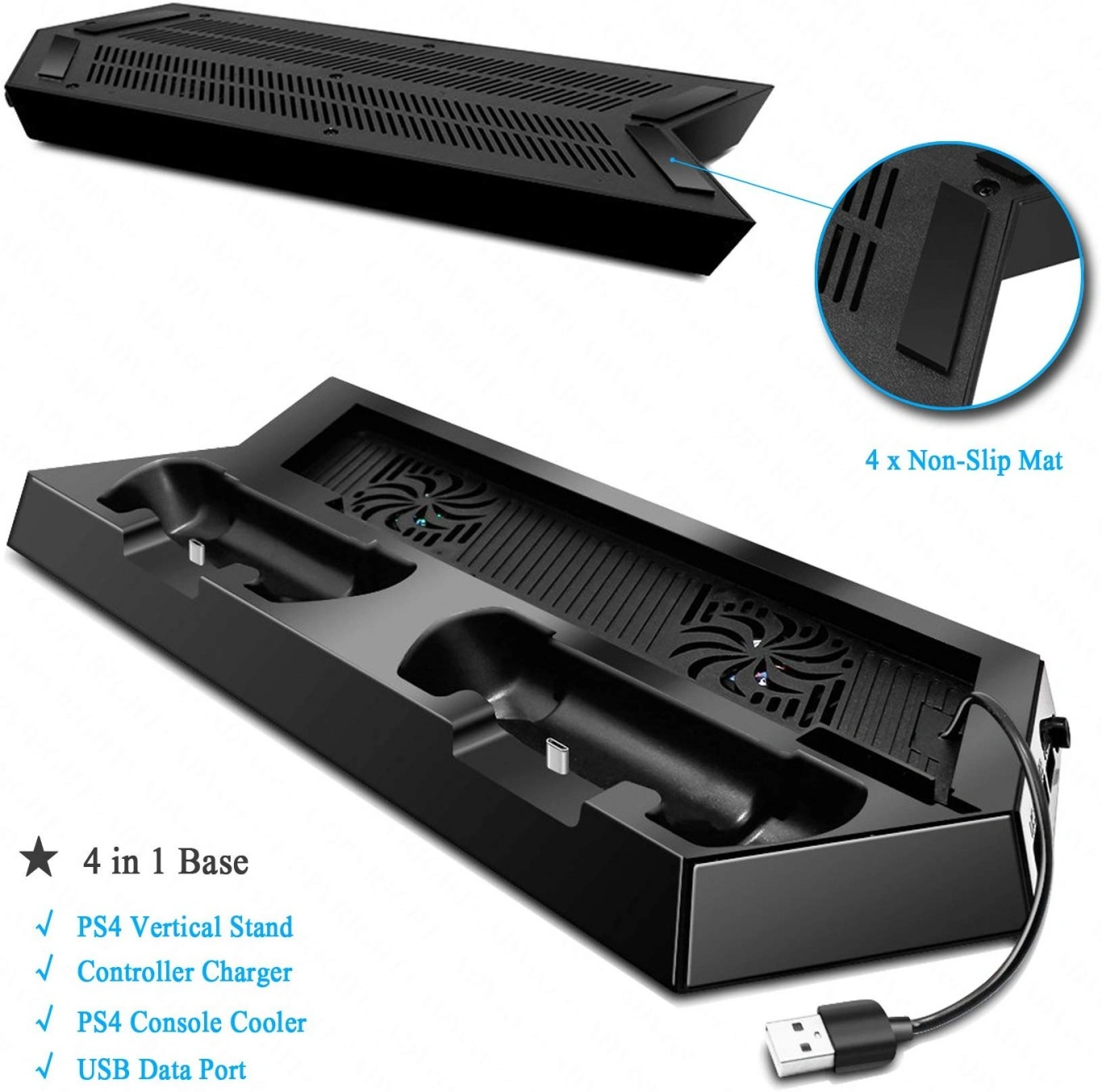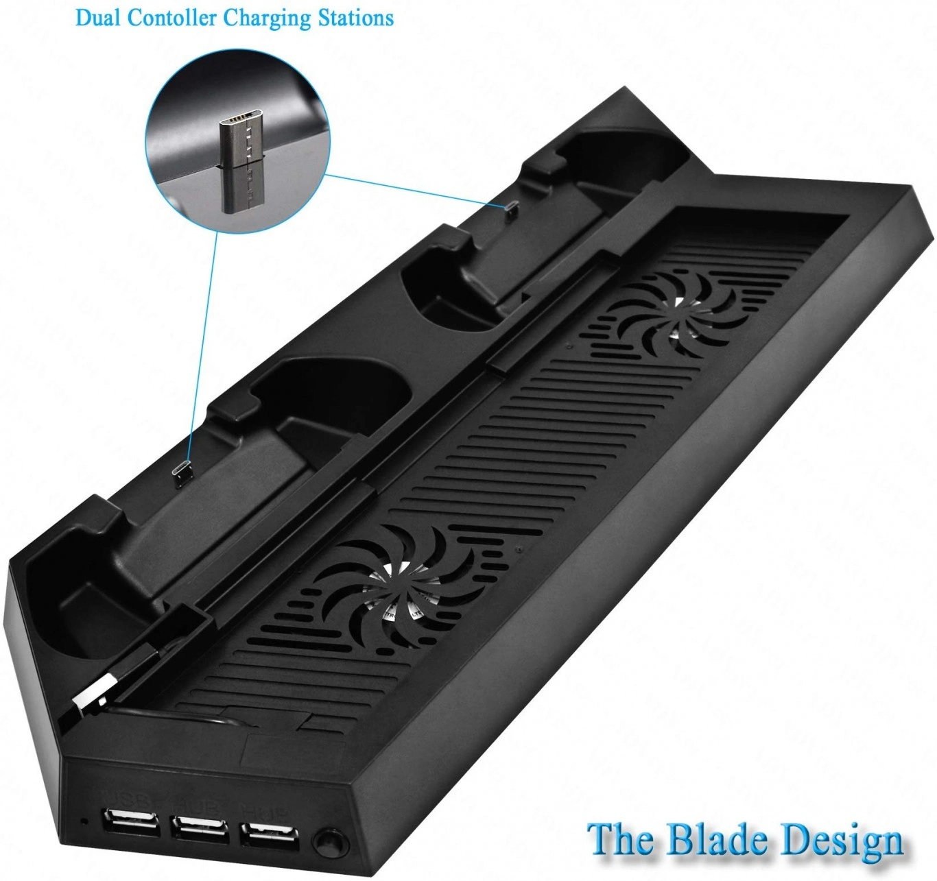 Dobe Κάθετη Διπλή Βάση Φόρτισης Χειριστηρίων PS4 & Stand με Ανεμιστήρα Κονσόλας με 3 x USB Θύρες Φόρτισης – PS4 Console Cooling Stand Dobe & Controller Charger