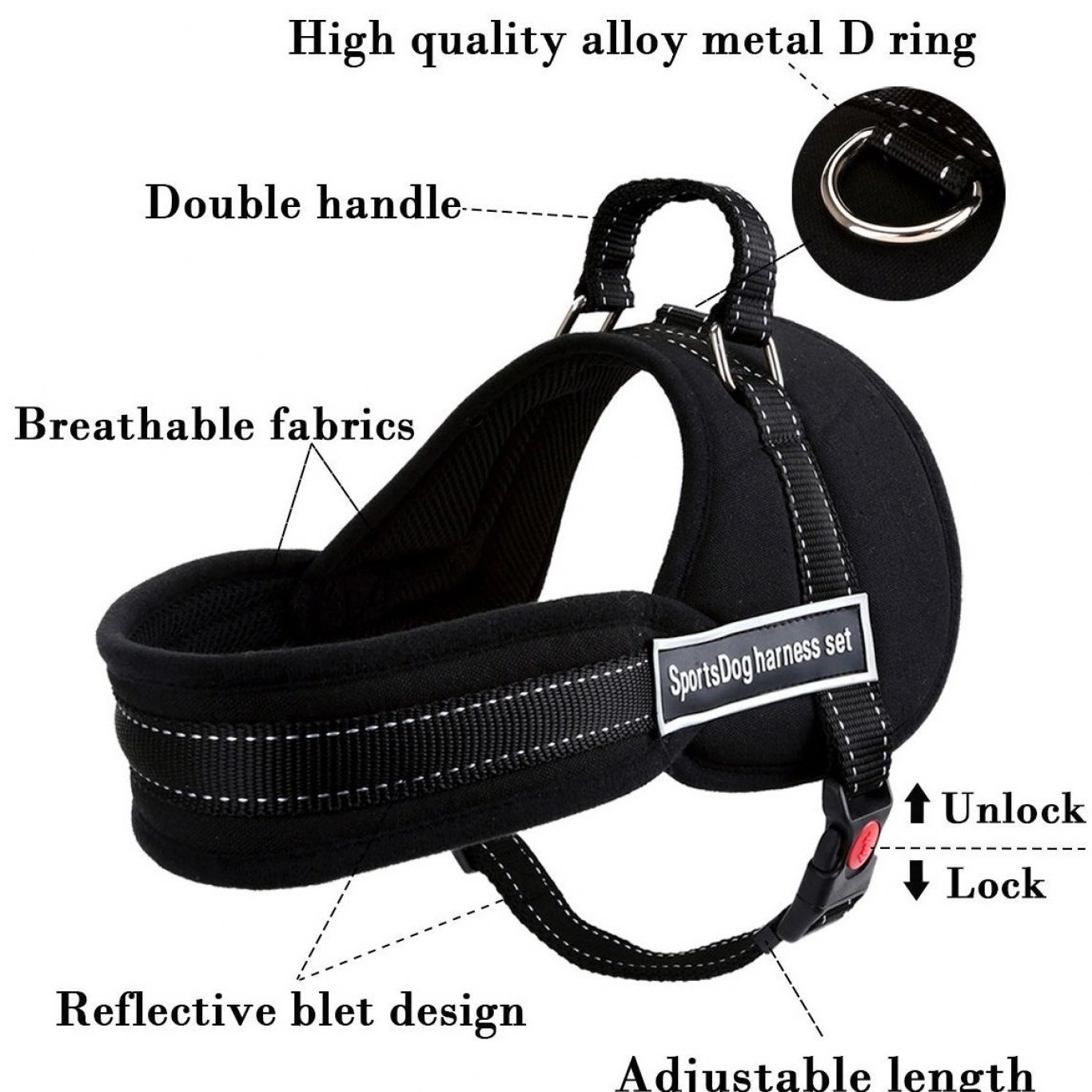 Εκπαιδευτικό Ρυθμιζόμενο Σαμαράκι – Λουρί Σκύλου – SportsDog Harness Set Μαύρο