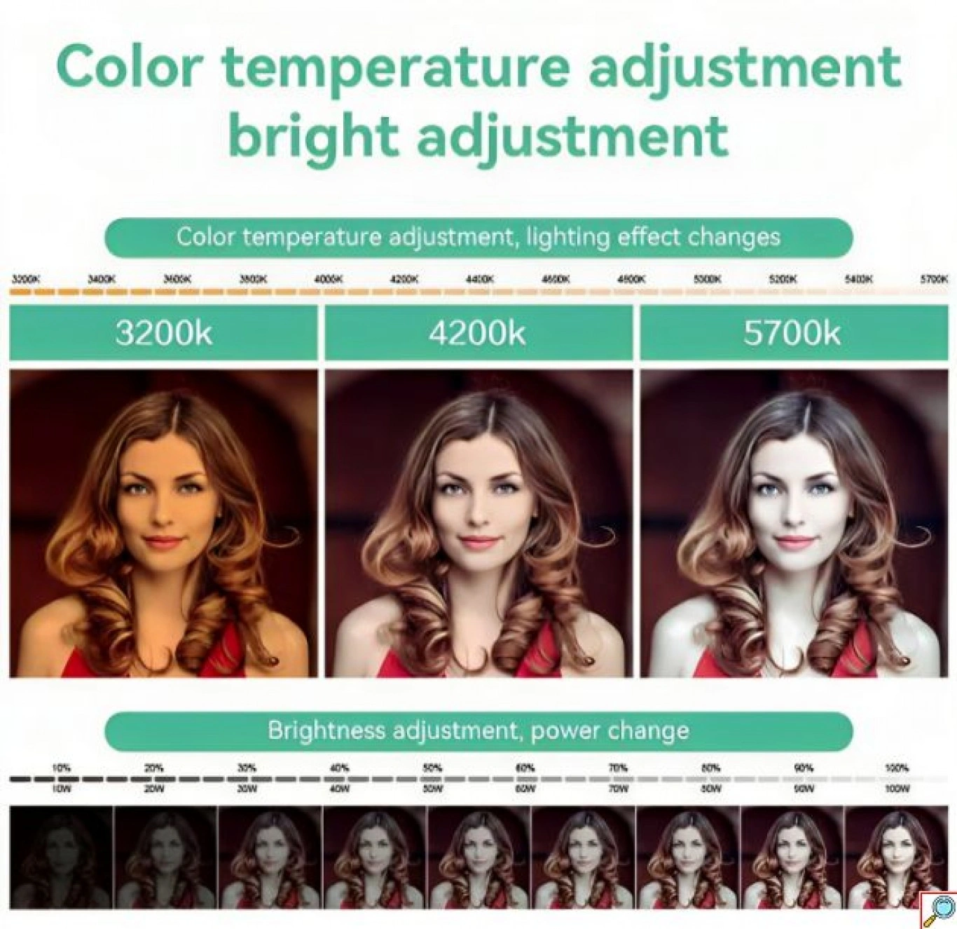 ✔️Μπορείτε να επιλέξετε τη θερμοκρασία του χρώματος μεταξύ 3200 – 5700Κ, αν θα είναι σταθερός ή strobe φωτισμός αλλά και την ένταση του.