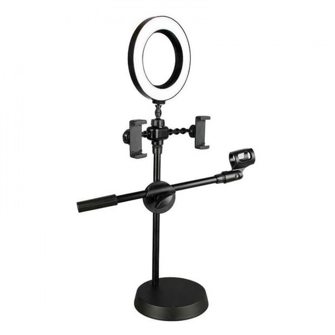 Το Ring Light LED με Bάσεις για Kινητό & Mικρόφωνο αποτελείται από Ring Light με LED λαμπτήρες για χαμηλή κατανάλωση και 3 διαφορετικές θερμοκρασίες χρώματος για να δημιουργήσετε την ατμόσφαιρα που επιθυμείτε, 2 βάσεις για Smartphone ώστε να δημιουργείτε περιεχόμενο για διαφορετικές πλατφόρμες ταυτόχρονα και μία βάση μικροφώνου ώστε να εξασφαλίζετε καθαρό επαγγελματικό ήχο.