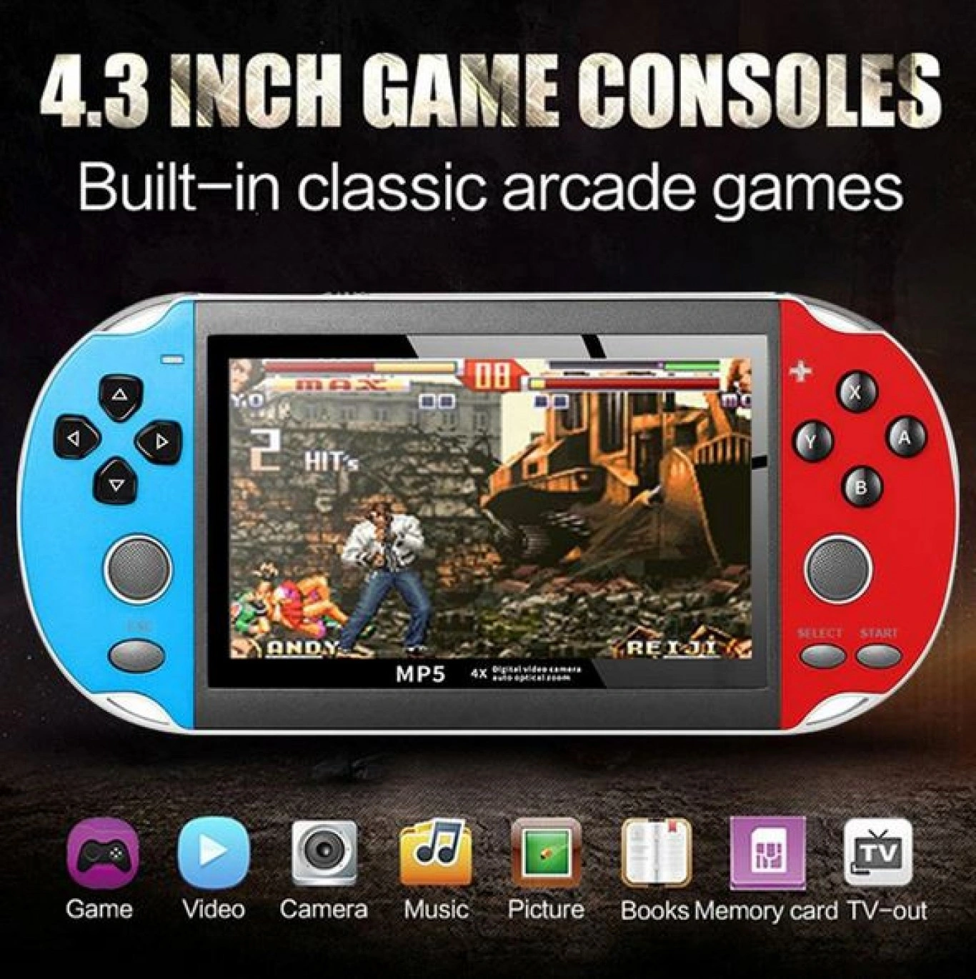 Επαναφορτιζόμενη Φορητή Ρετρό Παιχνιδομηχανή με HD Μεγάλη Οθόνη 4,3″- ANDOWL Q-A32