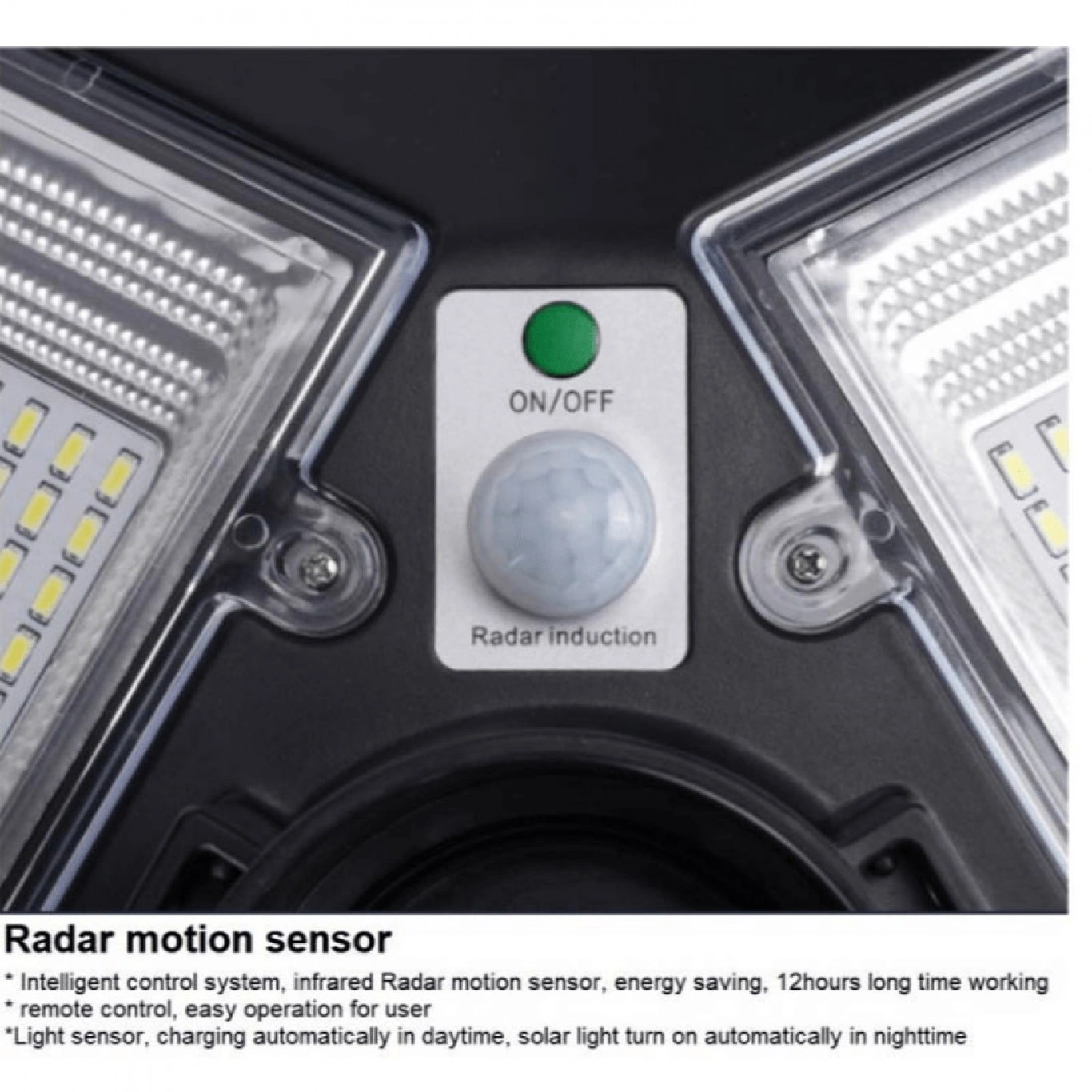 Επαναφορτιζόμενη Ηλιακή Λάμπα Δρόμου με Φωτοκύτταρο και Αισθητήρα Κίνησης UFO