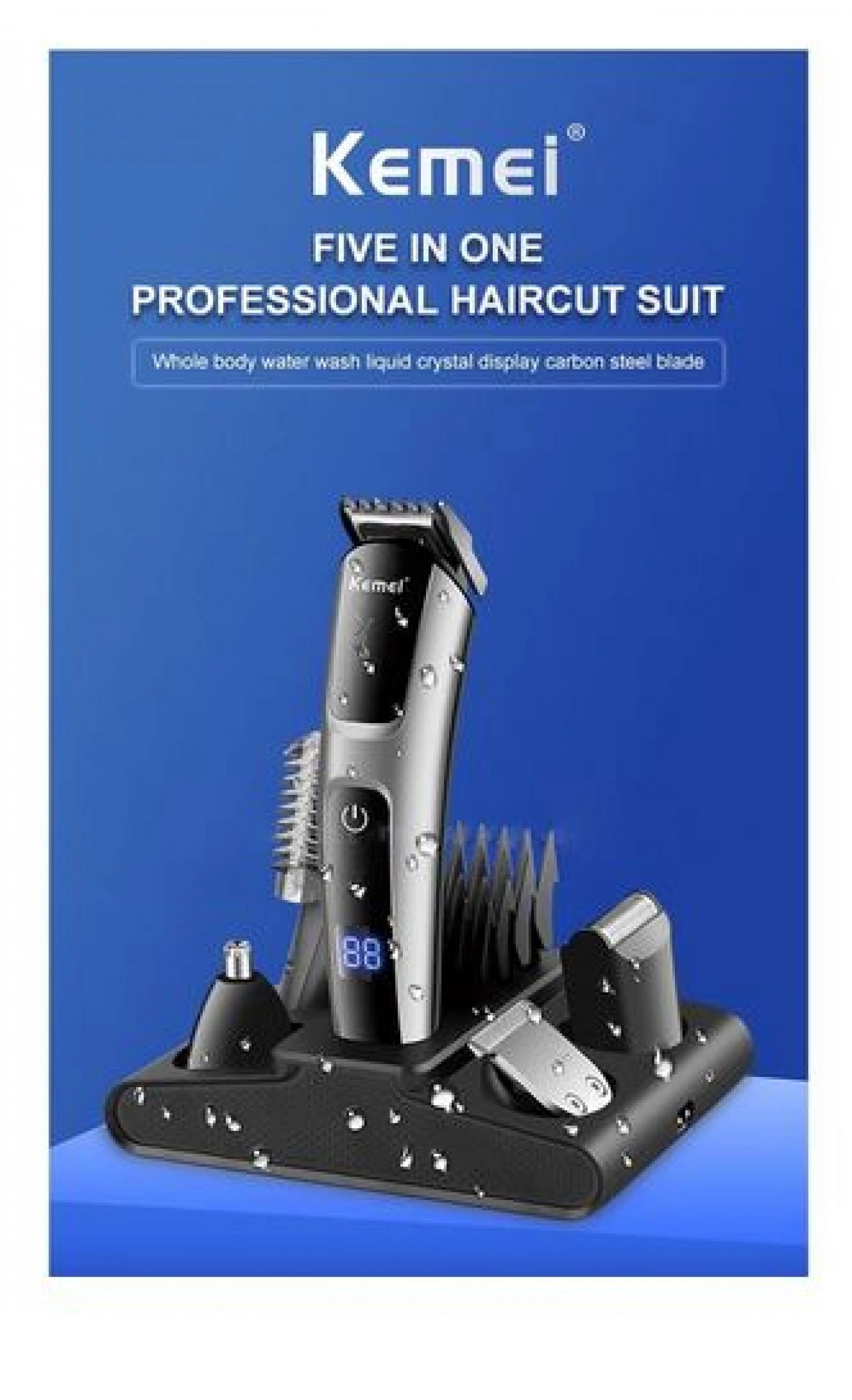 Επαναφορτιζόμενη Κουρευτική – Ξυριστική Μηχανή με 5 Κεφαλές 12 σε 1 Kemei KM-675