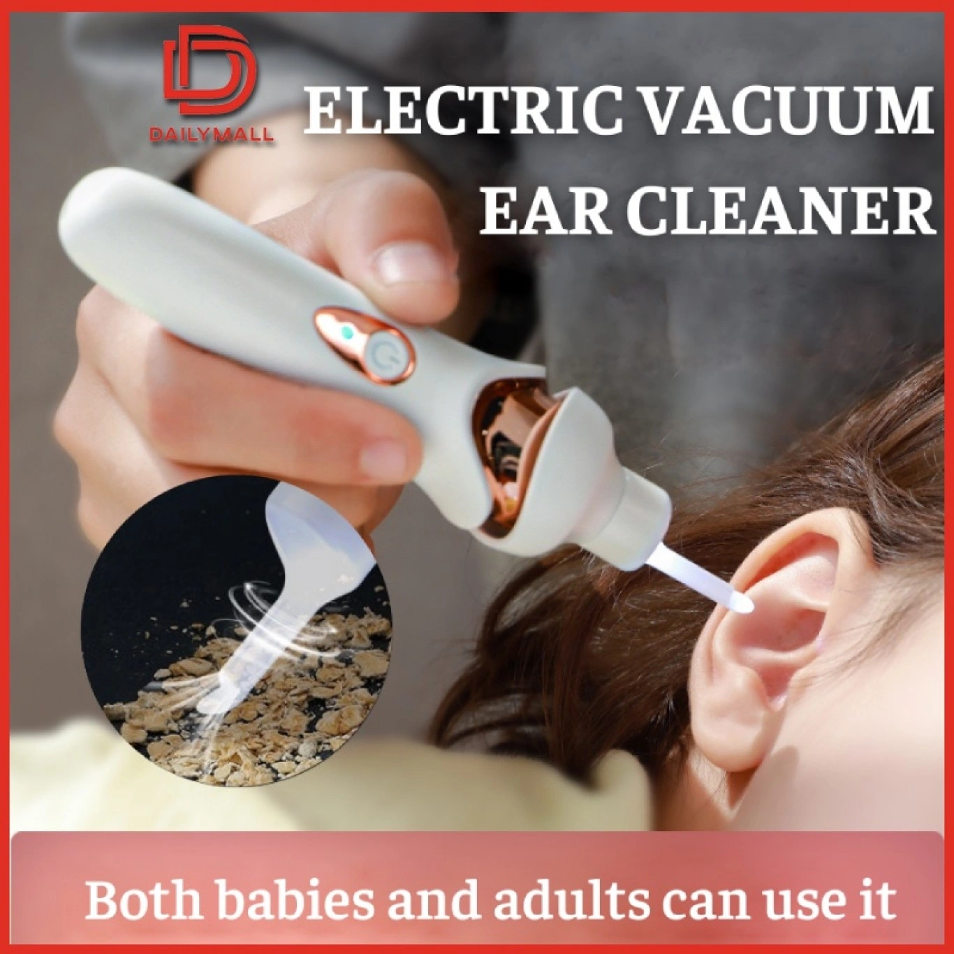 Συσκευή καθαρισμού που απορροφά όλες τις ακαθαρσίες που συσσωρεύονται στα αυτιά μας, όπου είναι συχνά η αιτία της κακής ακοής και μπορεί να προκαλέσει επίσης σοβαρές μολύνσεις. Είναι κατάλληλη για όλη την οικογένεια.