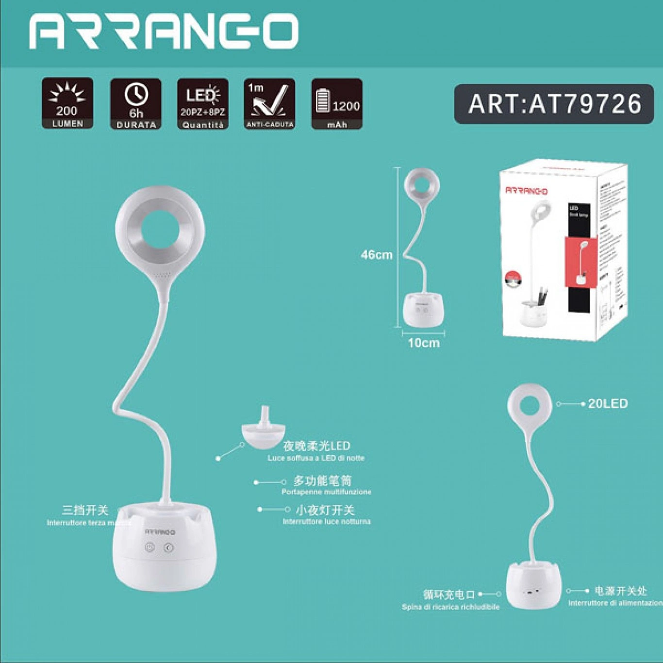 Επαναφορτιζόμενο Εύκαμπτο Φωτιστικό Γραφείου με Πολυλειτουργική Θήκη για Στυλό Arrango AT79726 Λευκό