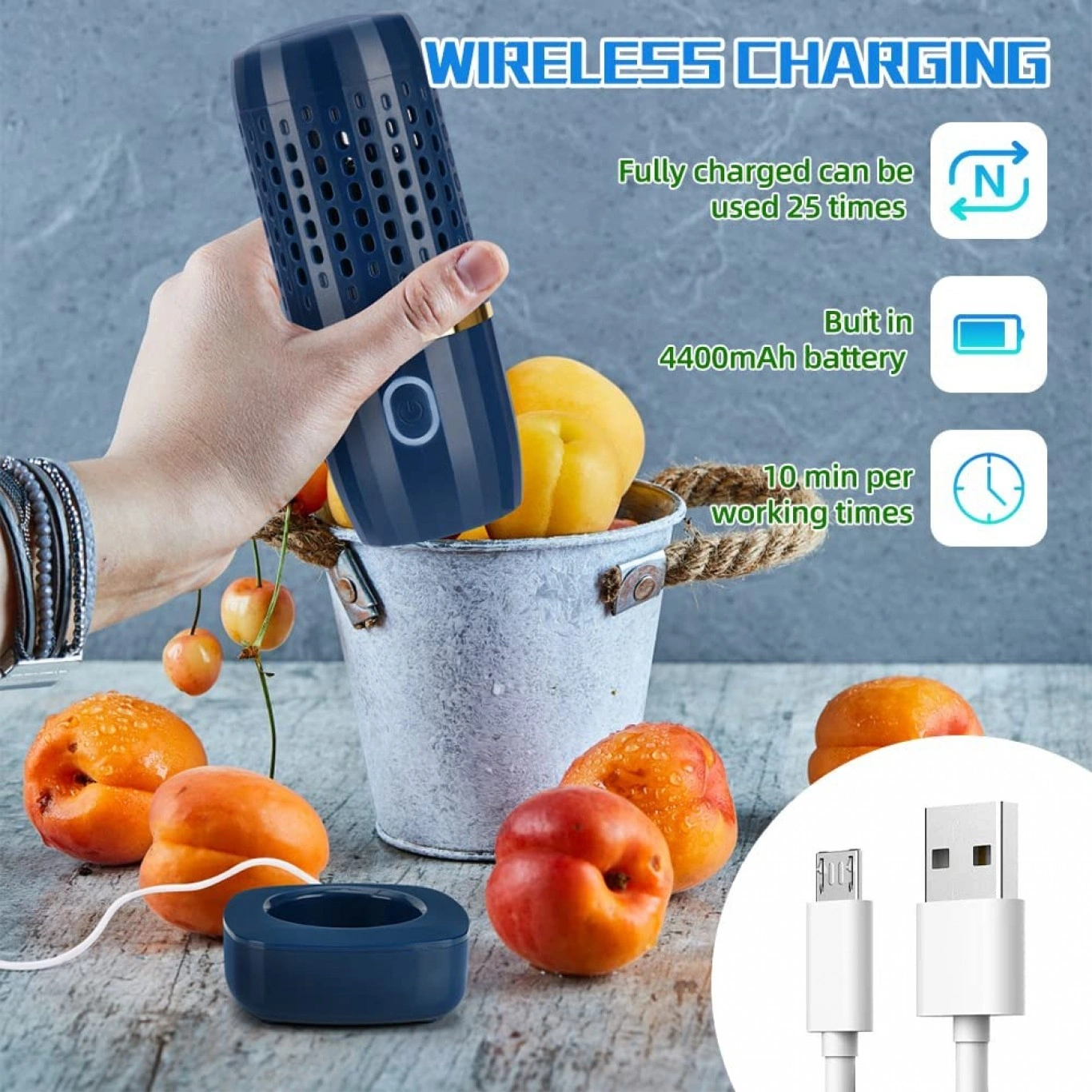 ✔️Πατήστε το κουμπί και βάλτε τη συσκευή καθαρισμού φρούτων στο νερό για 10-15 λεπτά και θα καθαρίσει αυτόματα τα φρούτα ή τα λαχανικά .