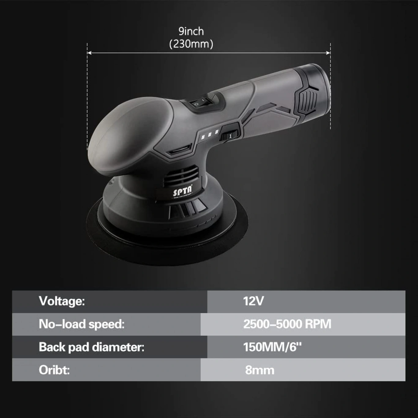 Επαναφορτιζόμενος Έκκεντρος Αλοιφαδόρος SPTA® 150mm 12V με Δύο Μπαταρίες 2x 2Ah & Ρύθμιση Στροφών