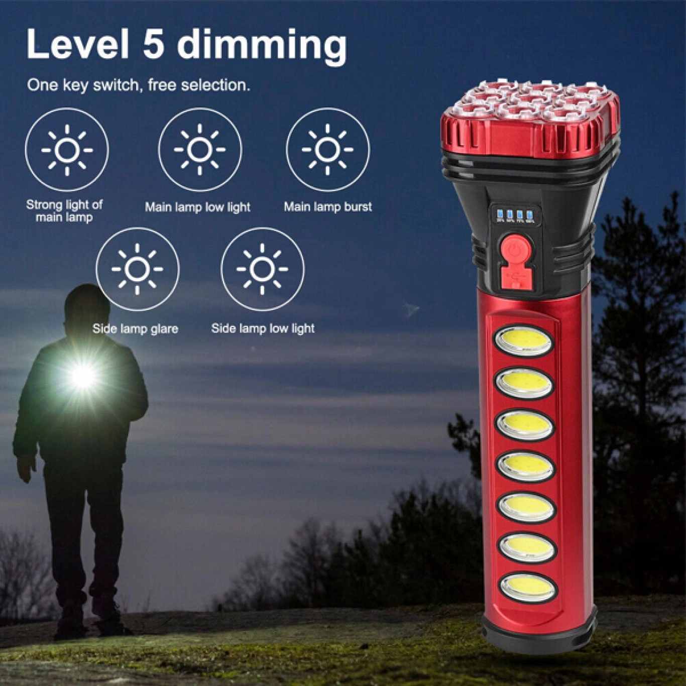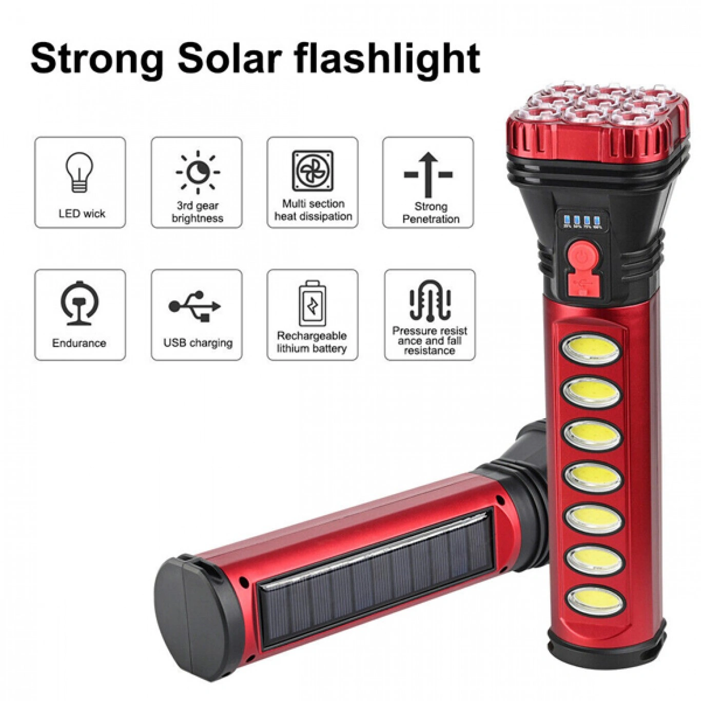 Επαναφορτιζόμενος φακός με ηλιακό πάνελ για να τον έχετε μαζί σας σε οποιαδήποτε υπαίθρια δραστηριότητα. Φόρτιση με USB ή ηλιακή ενέργεια για την επιλογή σας. Ενσωματωμένη μπαταρία 2400mah, γρήγορη φόρτιση, εύκολος στη χρήση και στη μεταφορά. Με βαθμό αδιαβροχοποιησης IP44, αυτός ο ηλιακός φακός LED έχει την ικανότητα να αντέχει στο νερό, ώστε να μπορεί να λειτουργεί κανονικά σε διάφορες δύσκολες καιρικές συνθήκες. Κατάλληλος για χρήση σε ταξίδια, πεζοπορία, κάμπινγκ, ψάρεμα, επισκευές, καταστάσεις έκτακτης ανάγκης στο σπίτι ή οπουδήποτε είναι απαραίτητος.