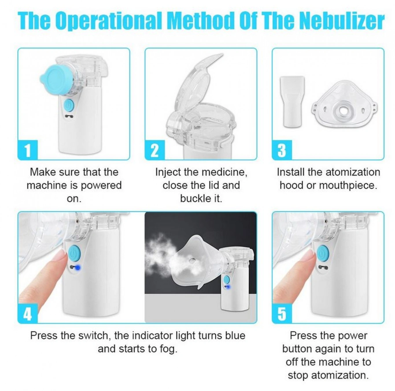 Ο επαναφορτιζόμενος νεφελοποιητής φαρμάκων παρέχει μια αποτελεσματική μέθοδο διανομής φαρμάκων σε μορφή ατμού, που μπορεί να εισπνευστεί εύκολα από τα πνευμόνια των βρεφών ή των ενηλίκων. Μπορεί να νεφελοποιήσει όλα τα φάρμακα σε πολύ λίγο χρόνο, ενώ αξίζει να αναφερθεί πως η εισπνοή είναι εφικτή σε όλες τις κλίσεις, ακόμη και σε οριζόντια θέση όταν ο ασθενής είναι ξαπλωμένος.