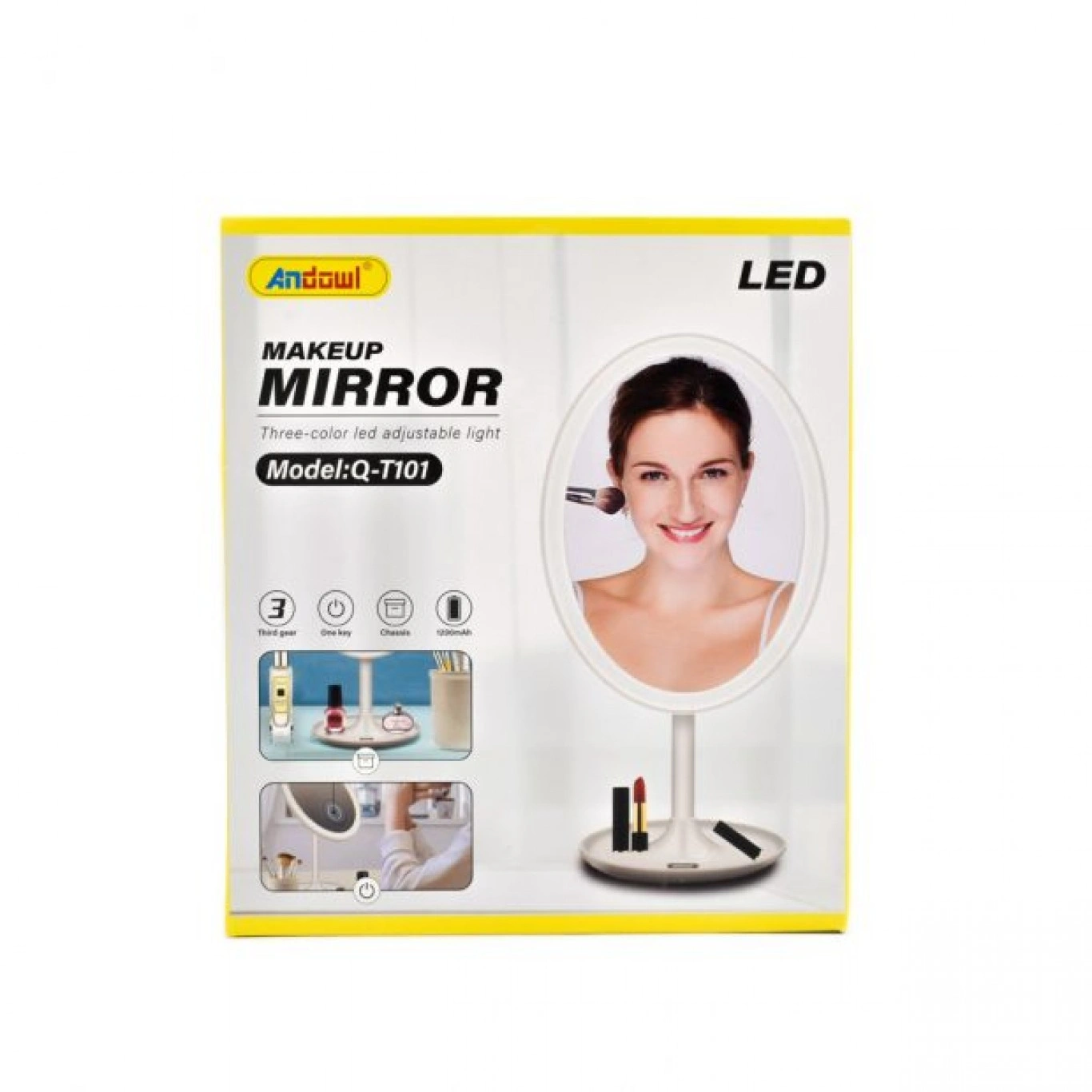 Επαναφορτιζόμενος Οβάλ Καθρέπτης Μακιγιάζ με Στρογγυλή Βάση & Φωτισμό LED USB Andowl Q-T101
