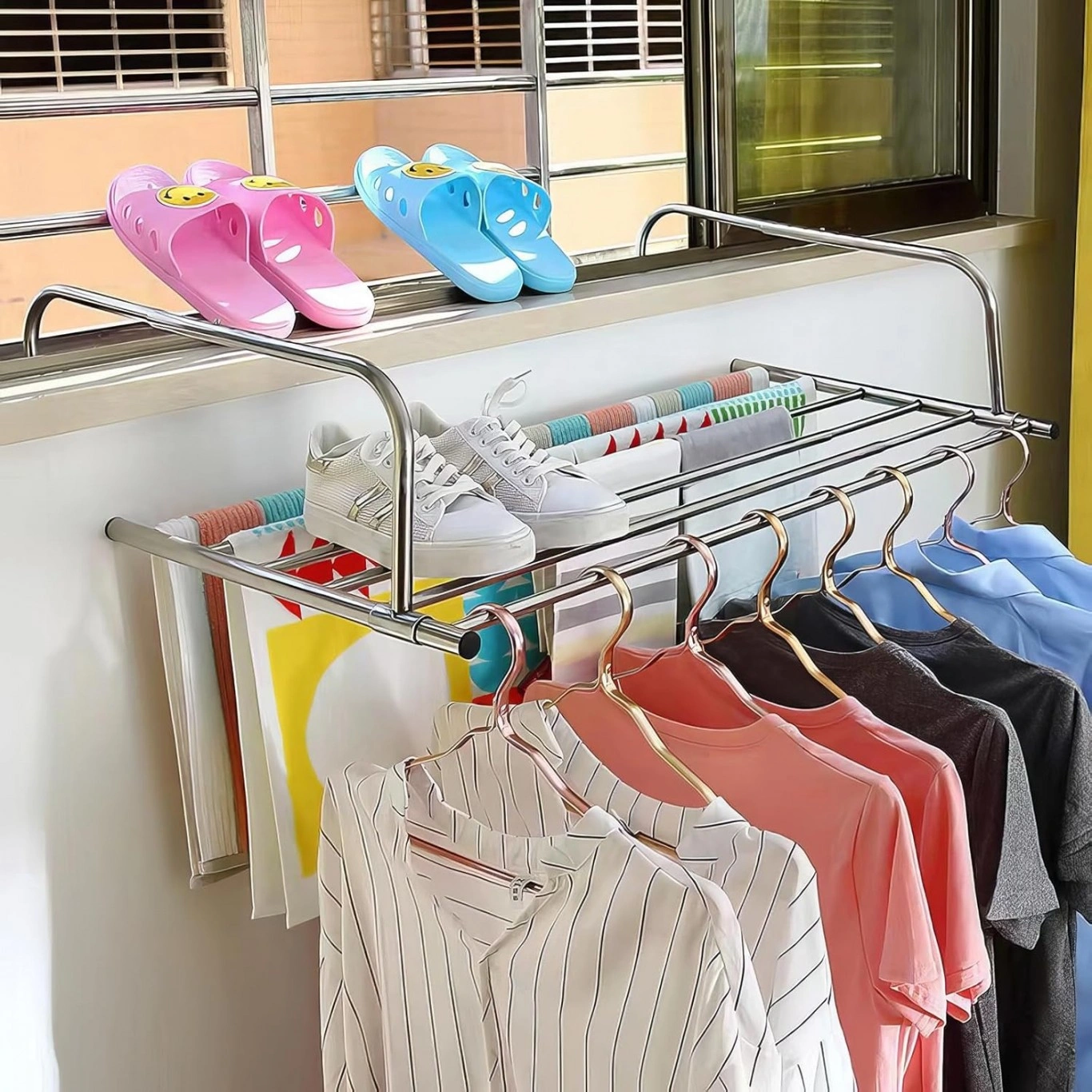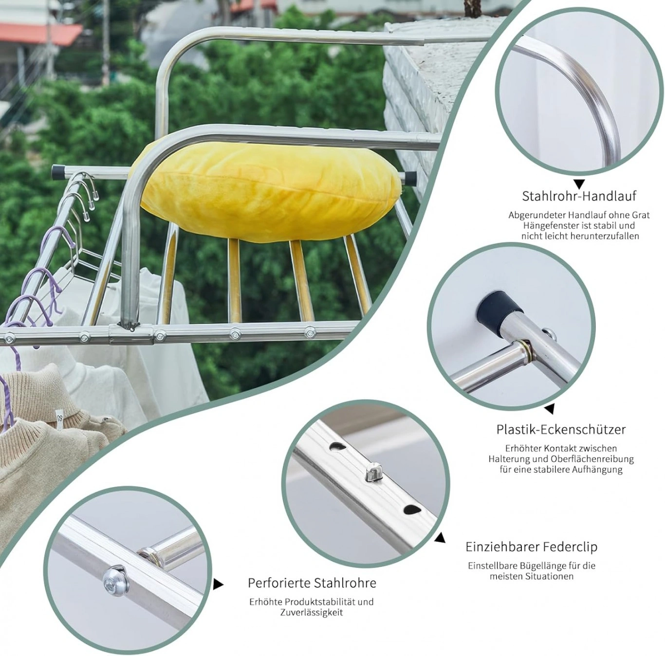 ✔️ Η απλώστρα διαθέτει ειδικά σχεδιασμένους γάντζους για εύκολη τοποθέτηση σε κάγκελα μπαλκονιού, εξασφαλίζοντας ασφαλή και σταθερή στήριξη.