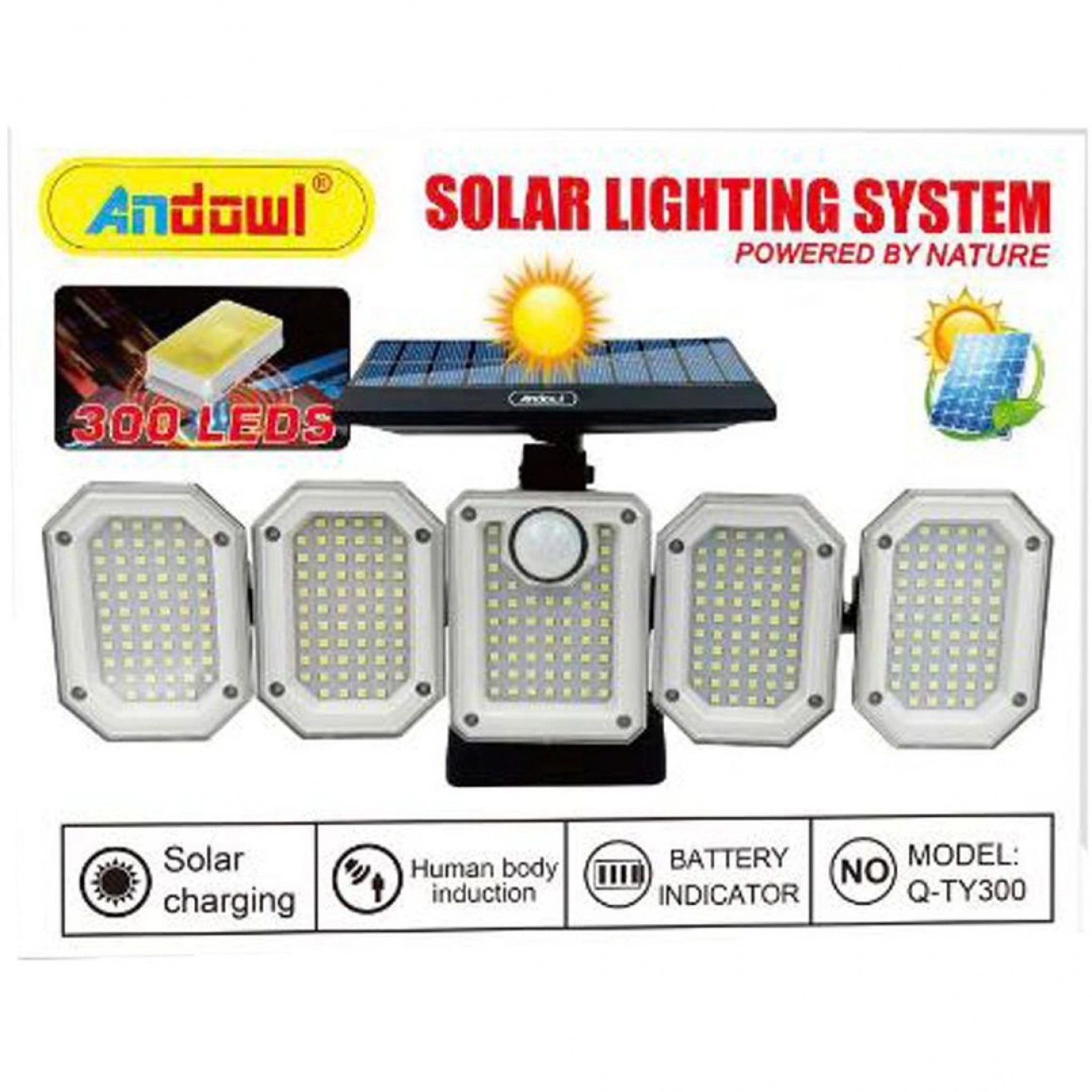Επιτοίχιο Ηλιακό Φωτιστικό 300LED 270º με Αισθητήρα Κίνησης IP65 Andowl Q-TY300 – Μαύρο
