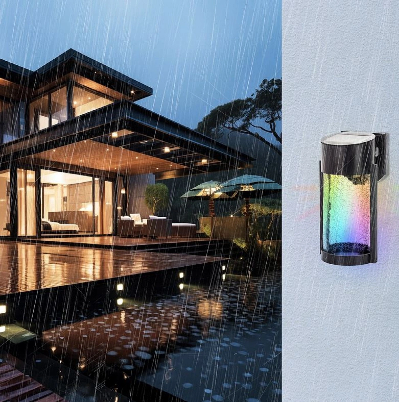 Μεταμορφώστε τον εξωτερικό σας χώρο με το κομψό επιτοίχιο LED ηλιακό φωτιστικό! Με RGB Φωτισμό, προστασία IP44 και αυτόματη λειτουργία έως 12 ώρες, είναι η τέλεια επιλογή για κήπους, αυλές και βεράντες. Χωρίς καλώδια, φιλικό προς το περιβάλλον και με μοντέρνο design, προσφέρει ατμοσφαιρικό φωτισμό με ελάχιστη κατανάλωση.