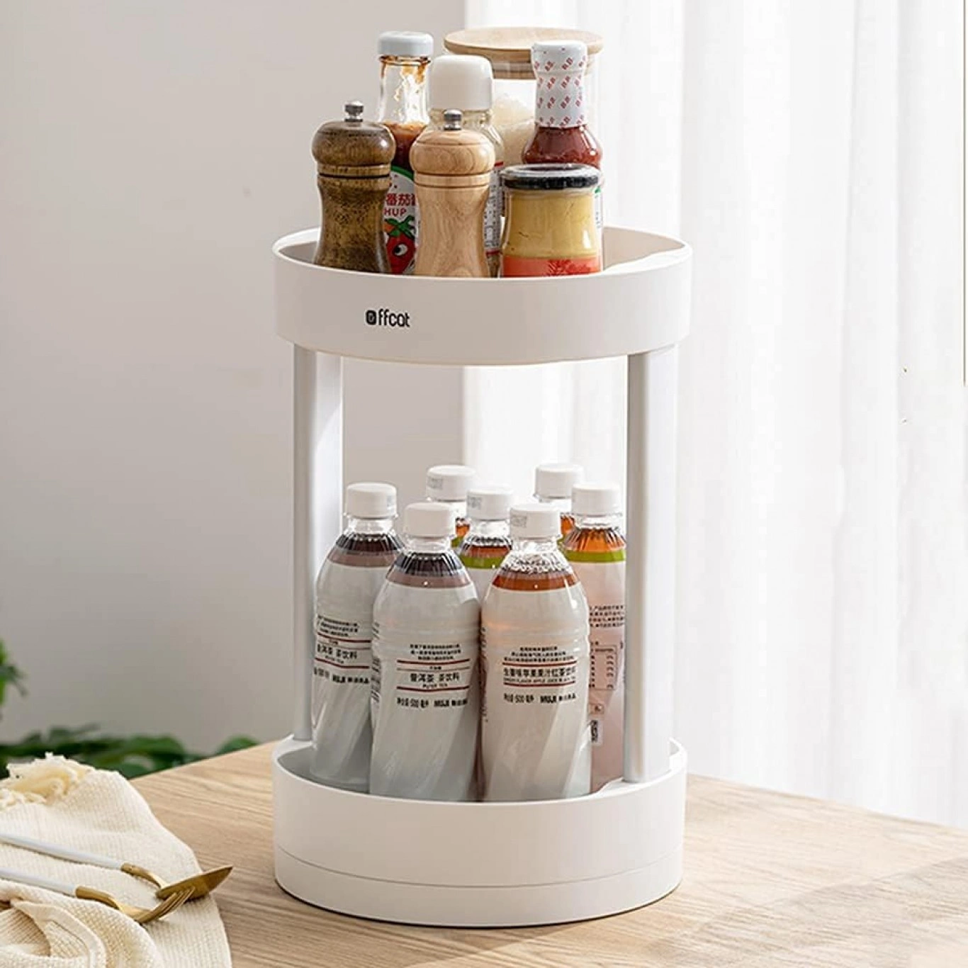 Η επιτραπέζια πλαστική βάση οργάνωσης περιστρεφόμενη 360° με 2 ράφια είναι η ιδανική λύση για την αποθήκευση και οργάνωση των αντικειμένων σας, μεγιστοποιώντας τον διαθέσιμο χώρο στην κουζίνα, το μπάνιο, το υπνοδωμάτιο ή το γραφείο σας.