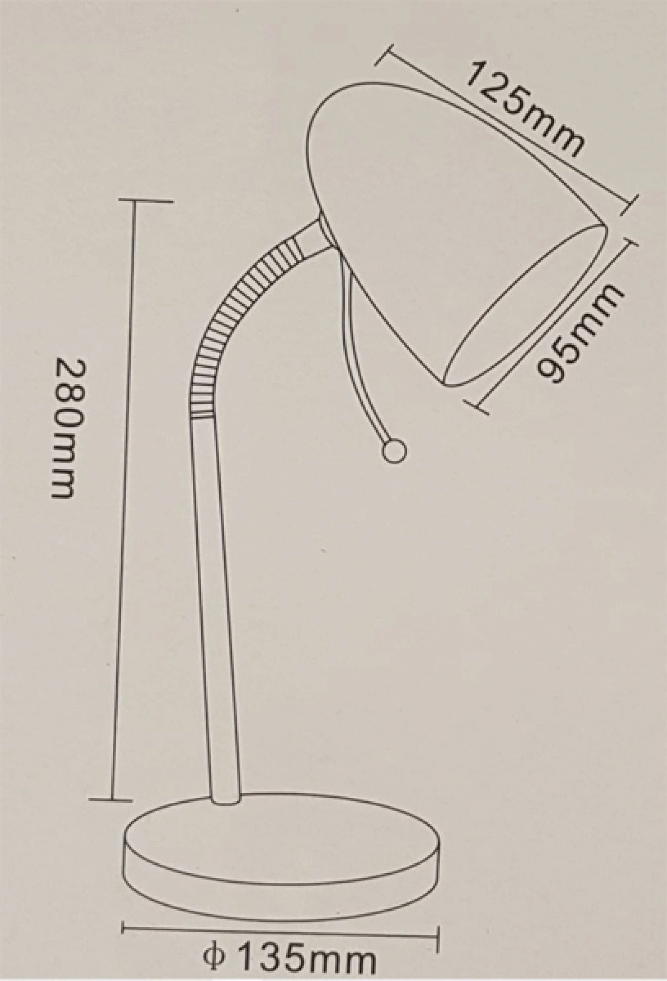 Πολύ βολική λάμπα γραφείου! Με οπές στο επάνω μέρος, ώστε το προϊόν να αποβάλλει γρήγορα τη θερμότητα και να διατηρείται πιο δροσερό. Μεταλλική επιφάνεια με ανθεκτικό βερνίκι. Απαιτεί λαμπτήρα E27, που βρίσκετε εύκολα παντού. Ο εύκαμπτος σωλήνας μπορεί να λυγίσει μέχρι 360 ° για να φωτίσει οποιαδήποτε γωνία του δωματίου. Λειτουργεί με ηλεκτρικό ρεύμα.