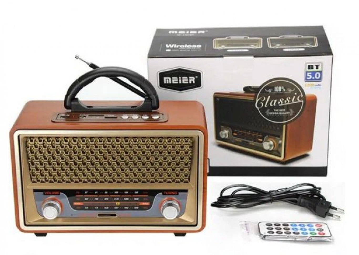 Κομψό μικρό ελαφρύ και στυλάτο αναλογικό ραδιόφωνο Meier M-157BT σε ρετρό σχεδιασμό που μπορεί να χρησιμοποιηθεί και σαν ηχείο, με σύνδεση σε οποιαδήποτε συσκευή μέσω AUX, USB, Bluetooth. Διαθέτει υποδοχή κάρτας μνήμης.