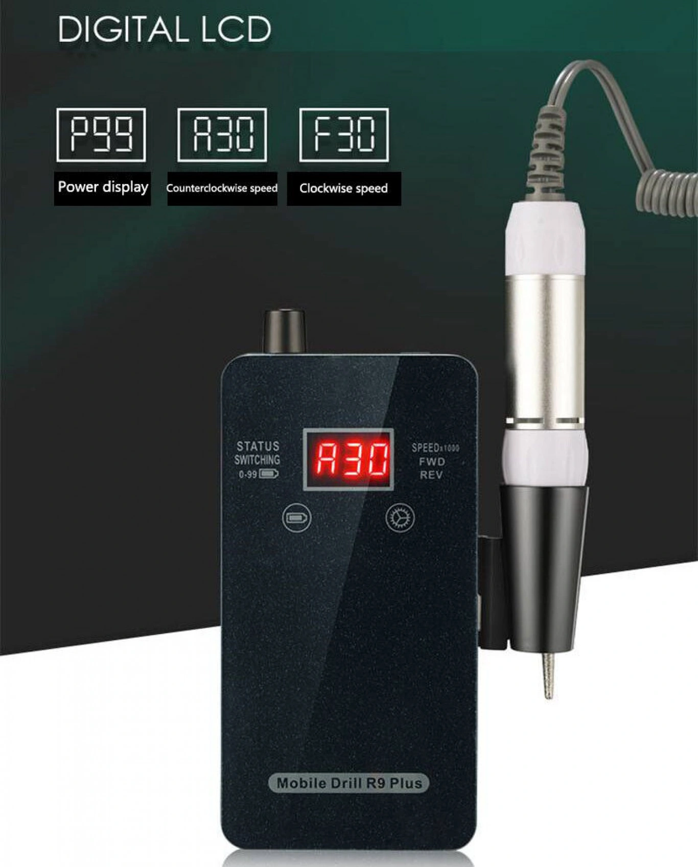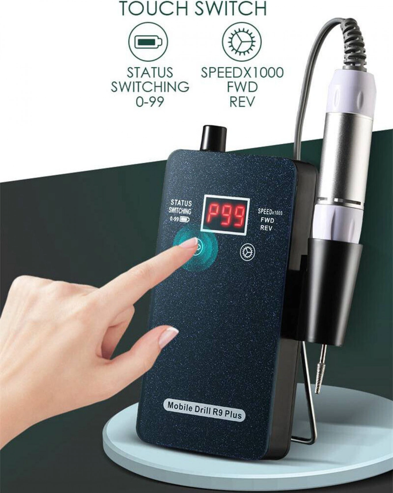 Φορητός Επαναφορτιζόμενος Τροχός Μανικιούρ Πεντικιούρ με Ψηφιακή Οθόνη και Πλήκτρα Αφής R9PLUS