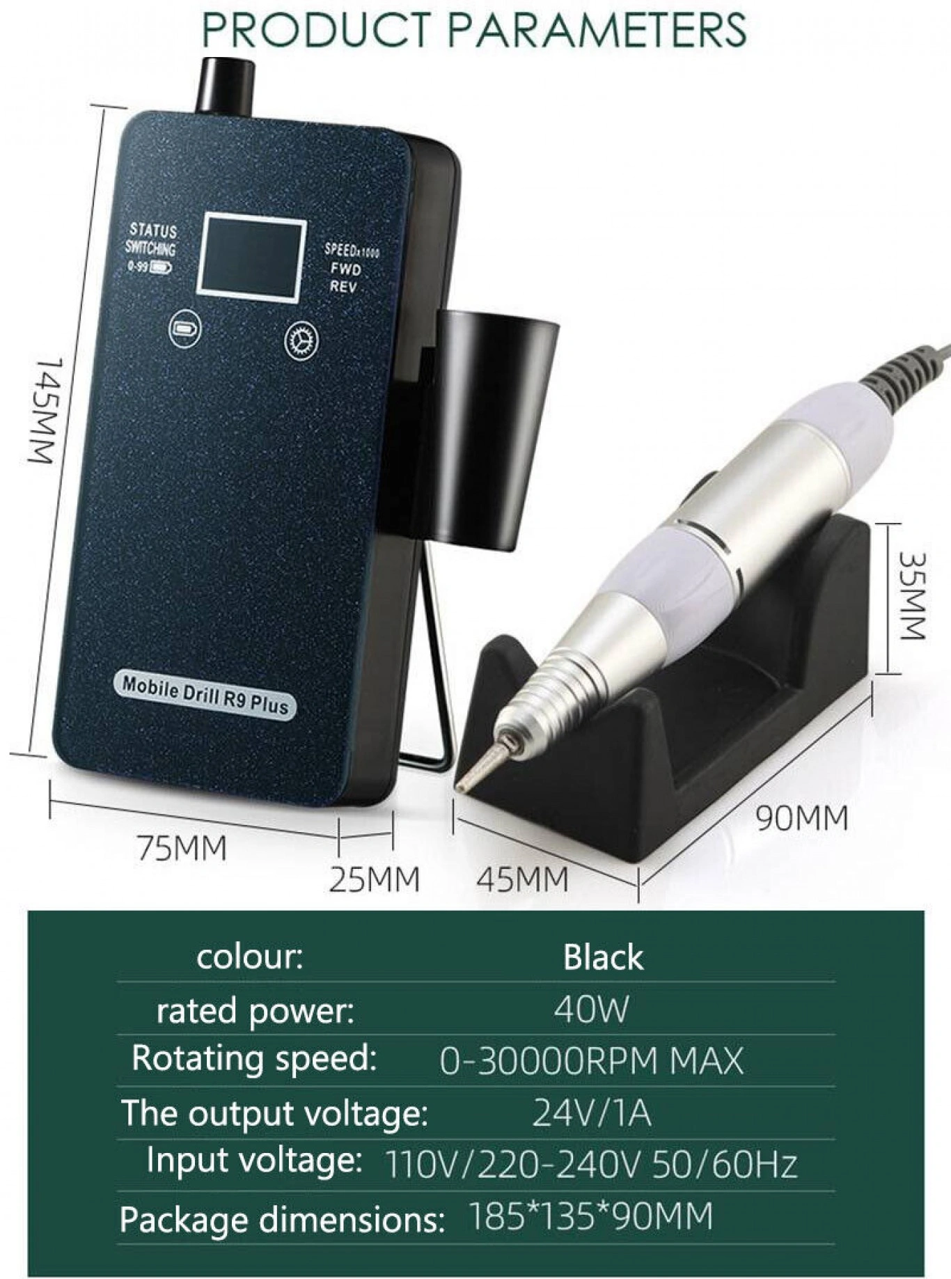 Η ισχυρή επαναφορτιζόμενη συσκευή 30.000 στροφών ανα λεπτό είναι ένα δημοφιλές μοντέλο για την διεξαγωγή του μανικιούρ και του πεντικιούρ.Είναι εύκολη στη χρήση και ικανή να εκτελεί όλα τα είδη των εργασιών για πεντικιούρ, μανικιούρ και επέκταση νυχιών.