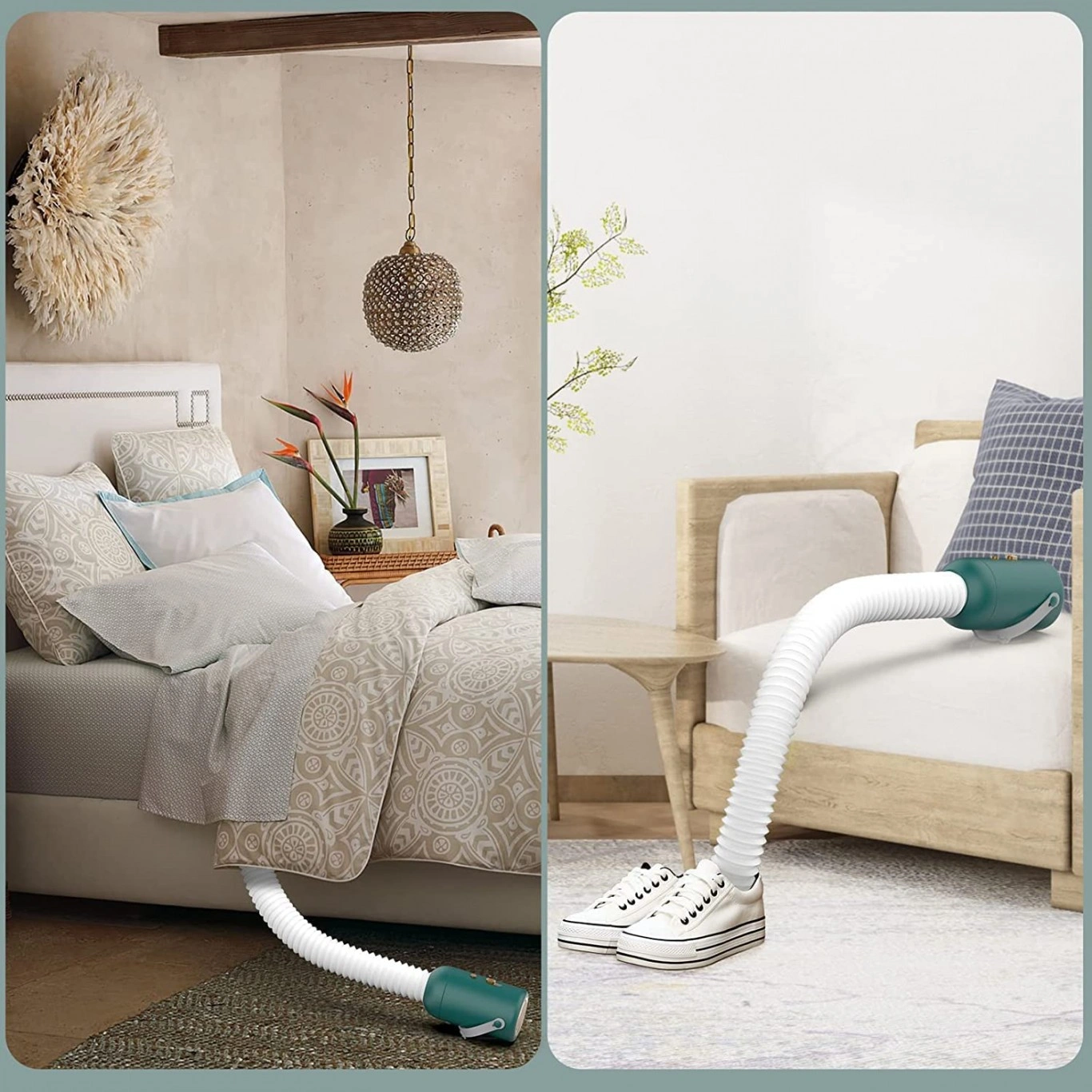 ✔️Χάρη στο πτυσσόμενο σωλήνα (προβοσκίδα) μπορείτε να το τοποθετήσετε στο πάτωμα για να ζεστάνετε το κρεβάτι σας κάτω από τα σεντόνια ή να το αφήσετε να απορροφήσει την υγρασία του στρώματος.