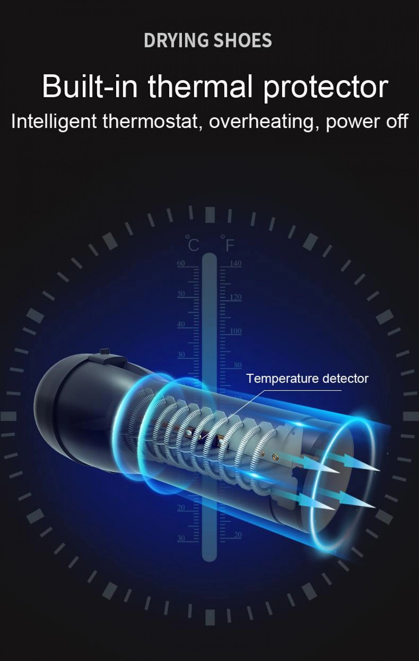 Στις βόρειες χώρες ή στα βουνά όπου η υγρασία είναι υψηλή, το εσωτερικό των παπουτσιών υγραίνεται και ιδρώνει με μεγαλύτερη ευκολία. Με το φορητό αερόθερμο – στεγνωτήρα το πρόβλημα θα αποτελέσει παρελθόν.✔️Χάρη στο πτυσσόμενο σωλήνα (προβοσκίδα) μπορείτε να το τοποθετήσετε στο πάτωμα για να ζεστάνετε το κρεβάτι σας κάτω από τα σεντόνια ή να το αφήσετε να απορρωφήσει την υγρασία του στρώματος.✔️Μπορείτε να το χρησιμοποιήσετε εύκολα ως πιστολάκι για στέγνωμα του τριχώματος των κατοικίδιών σας.