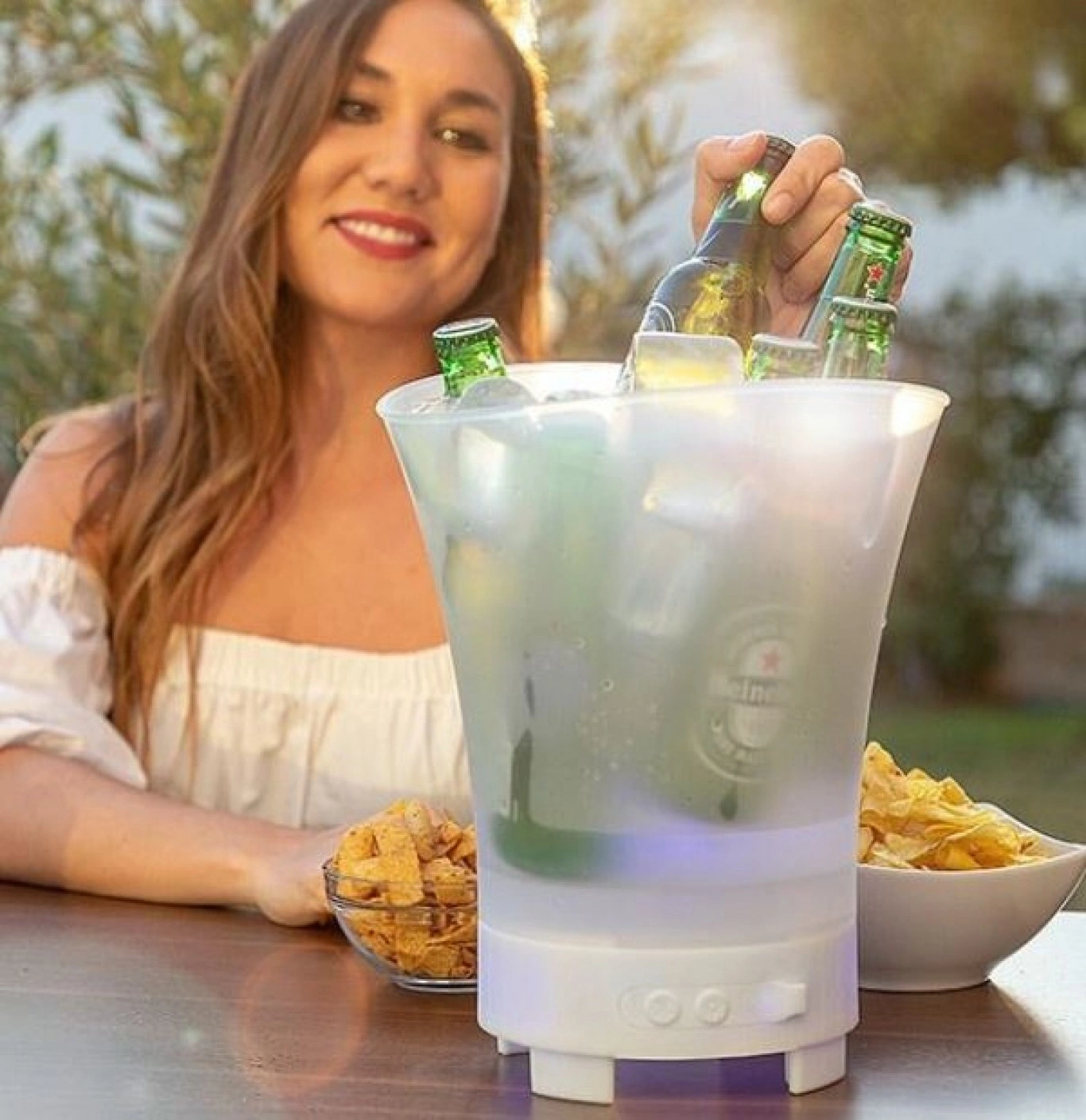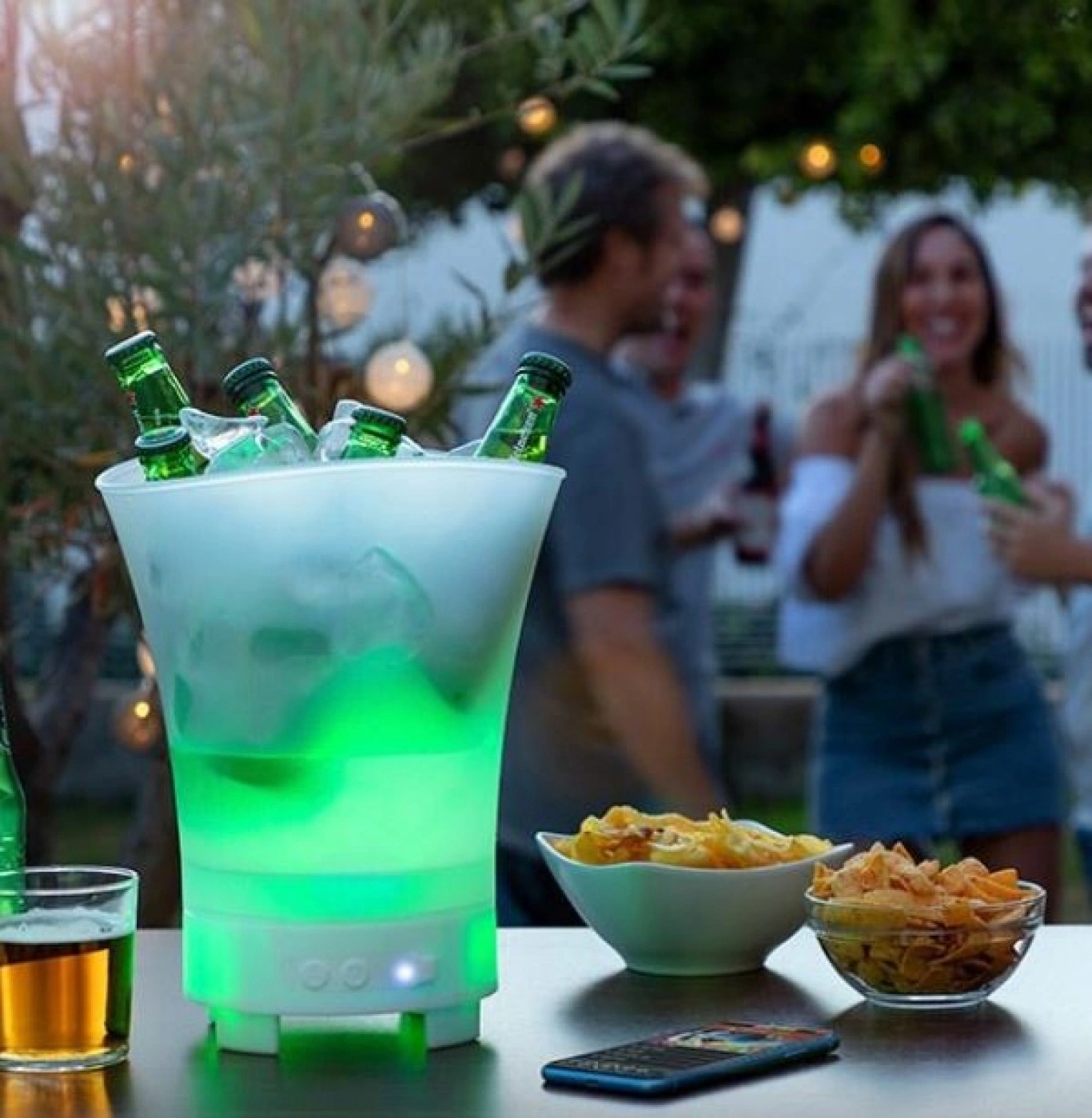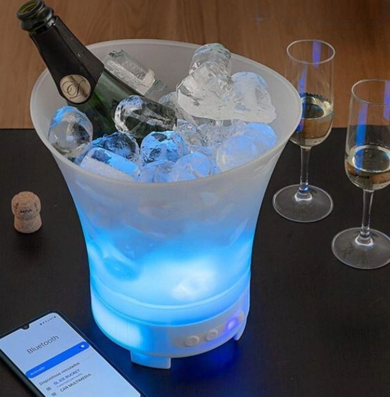 Φωτιζόμενη Πλαστική Σαμπανιέρα – Δοχείο Πάγου με Επαναφορτιζόμενο Ηχείο 5W & Bluetooth LED RGB