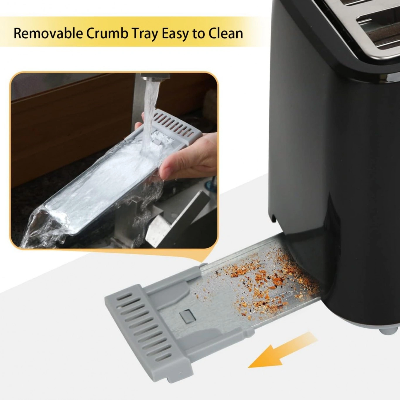 • Αποσπώμενος δίσκος αποθήκευσης ψίχουλων
