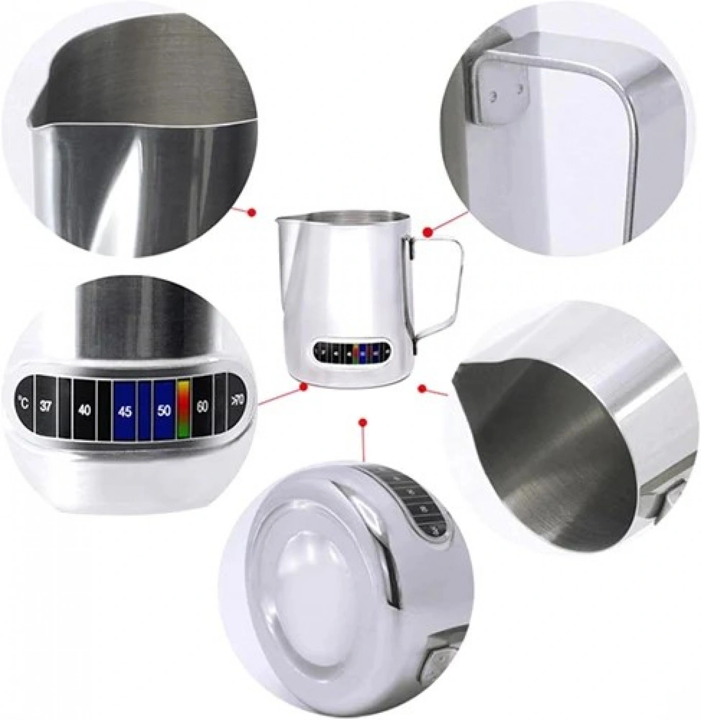 Γαλατιέρα 600ml Ανοξείδωτη με Ενσωματωμένο Θερμόμετρο – Latte & Cappuccino