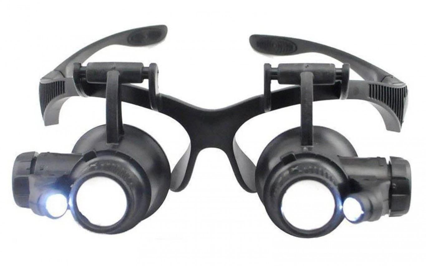 Γυαλιά – μεγεθυντικός φακός με δυνατότητα zoom 23x και φωτισμό με LED, πάνω σε σκελετό γυαλιών για ευκολία στη χρήση.