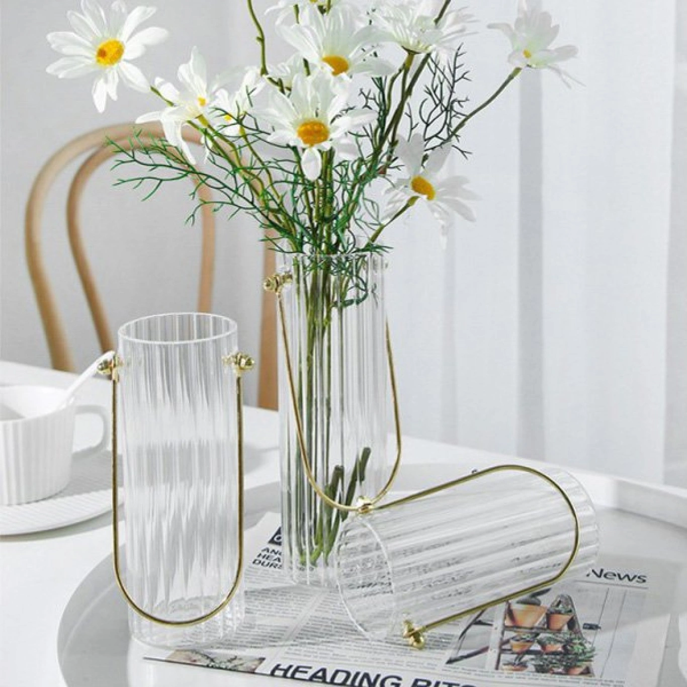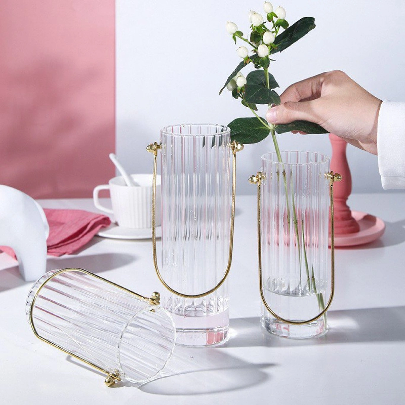 ✔️ 1 x Γυάλινο Ανθοδοχείο – Διακοσμητικό Βάζο με Χρυσή Λαβή Dolce Short