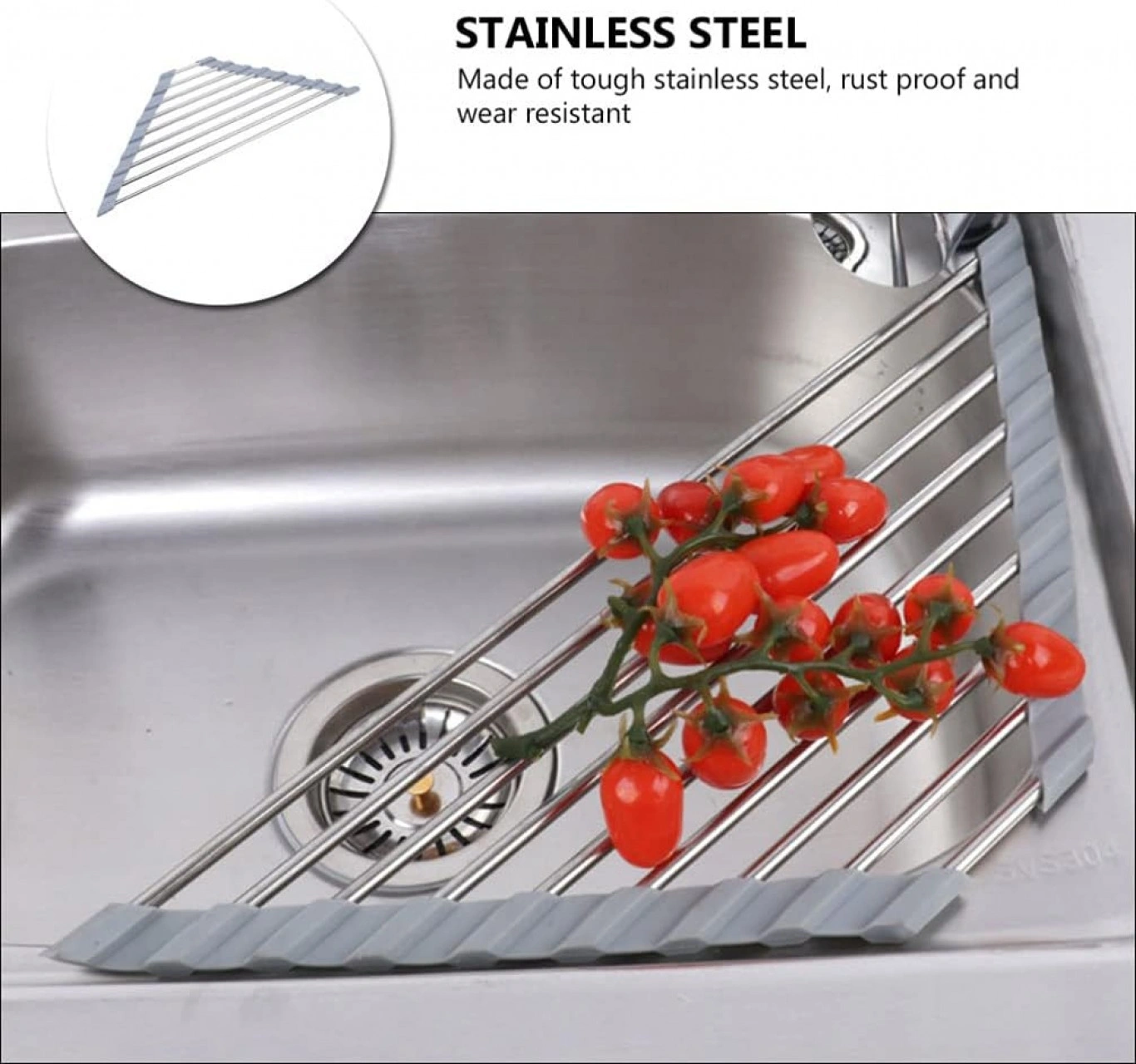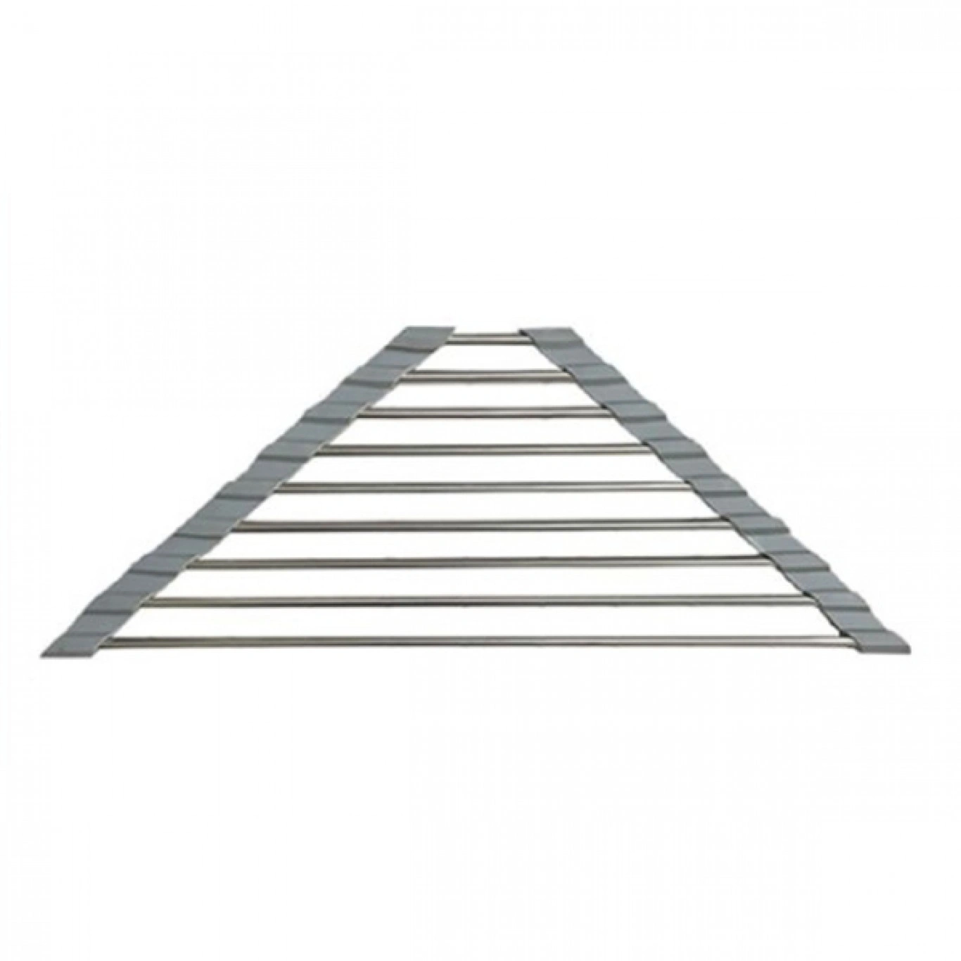 Στραγγιστήρι γωνιακό πτυσσόμενο ανοξείδωτο νεροχύτη 15.5X41cm. Τοποθετώντας τον στη γωνία του νεροχύτη, δημιουργείτε επιπλέον χώρο στην περιοχή εργασίας της κουζίνας, που μπορεί να χρησιμοποιηθεί για το κόψιμο, το πλύσιμο ή άλλες καθημερινές εργασίες.