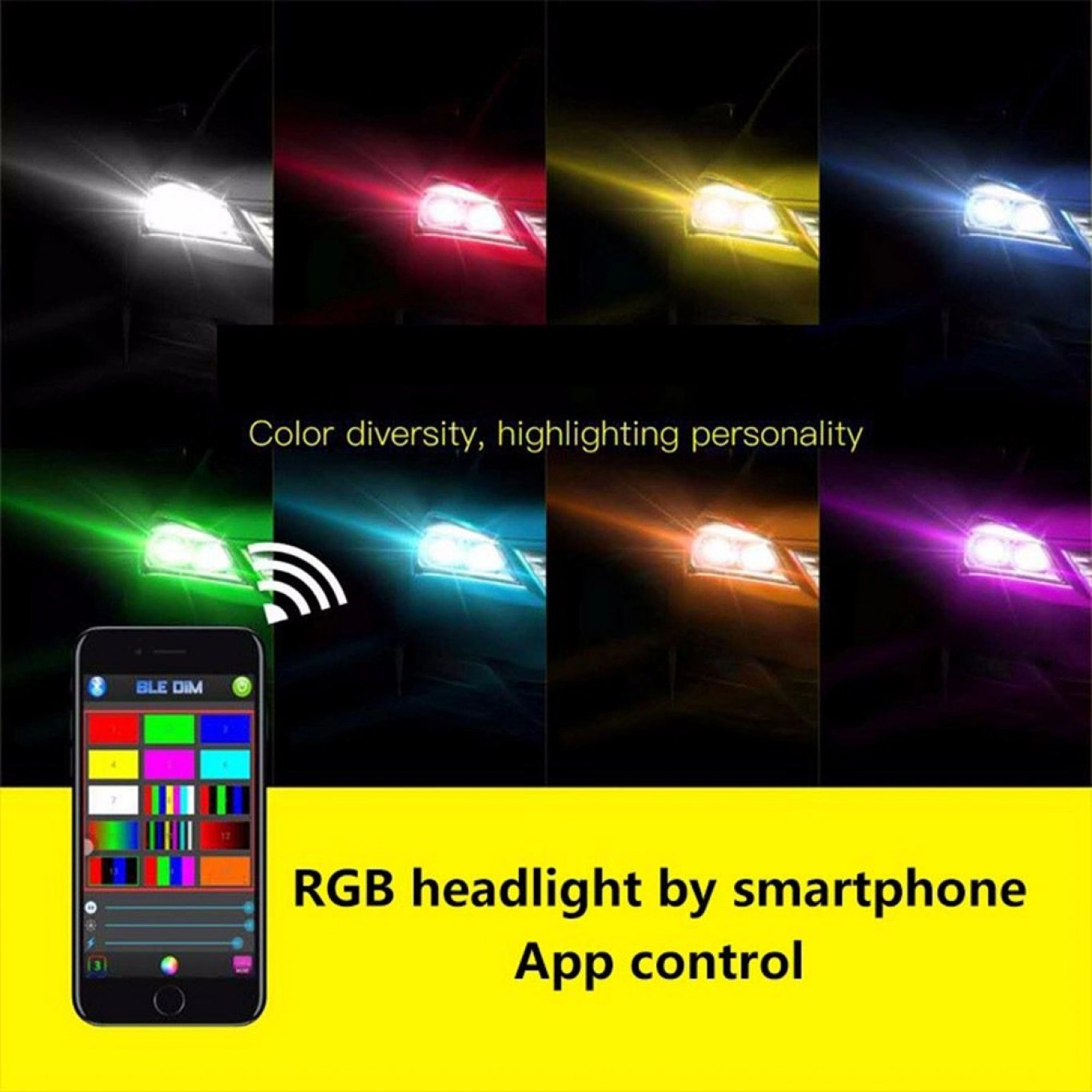 Αναβαθμίστε τα φώτα πορείας του αυτοκινήτου σας με αυτά τα LED COB H7 με λειτουργία RGB και δώστε στο όχημα σας την εμφάνιση που του αξίζει! Συνδέονται στο κινητό μέσω της Bluetooth εφαρμογής BLEDIM που σας δίνει τη δυνατότητα να αλλάξετε το χρώμα τους σε ό,τι θέλετε!✔️Αναβαθμίστε τα φώτα πορείας του αυτοκινήτου σας με αυτά τα LED COB H7 με λειτουργία RGB και δώστε στο όχημα σας την εμφάνιση που του αξίζει!✔️Συνδέονται στο κινητό μέσω της Bluetooth εφαρμογής BLEDIM που σας δίνει τη δυνατότητα να αλλάξετε το χρώμα τους σε ό,τι θέλετε!