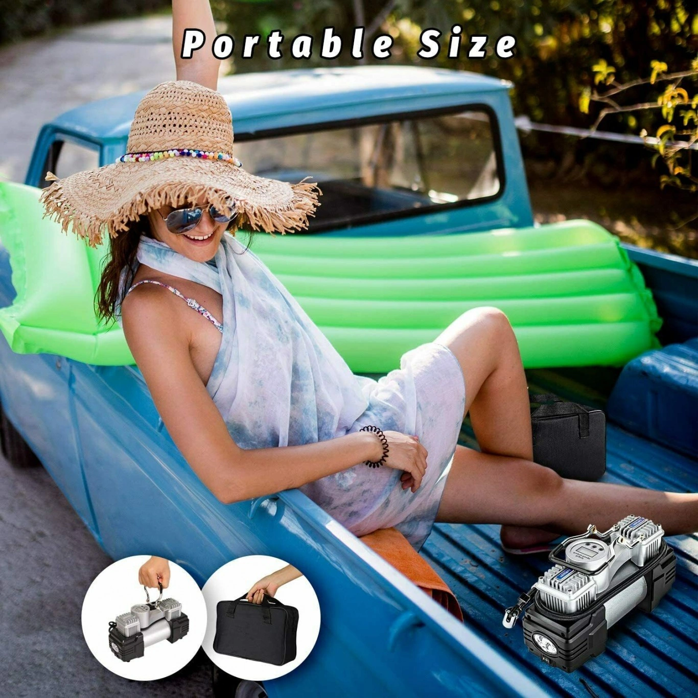 Heavy Duty Διπλό Κομπρεσέρ Αέρος 12V με 2 Κυλίνδρους Αυτοκινήτου 85 lt/min 150PSI με Μανόμετρο & Θήκη Μεταφοράς 628 4×4 – Air Compressor