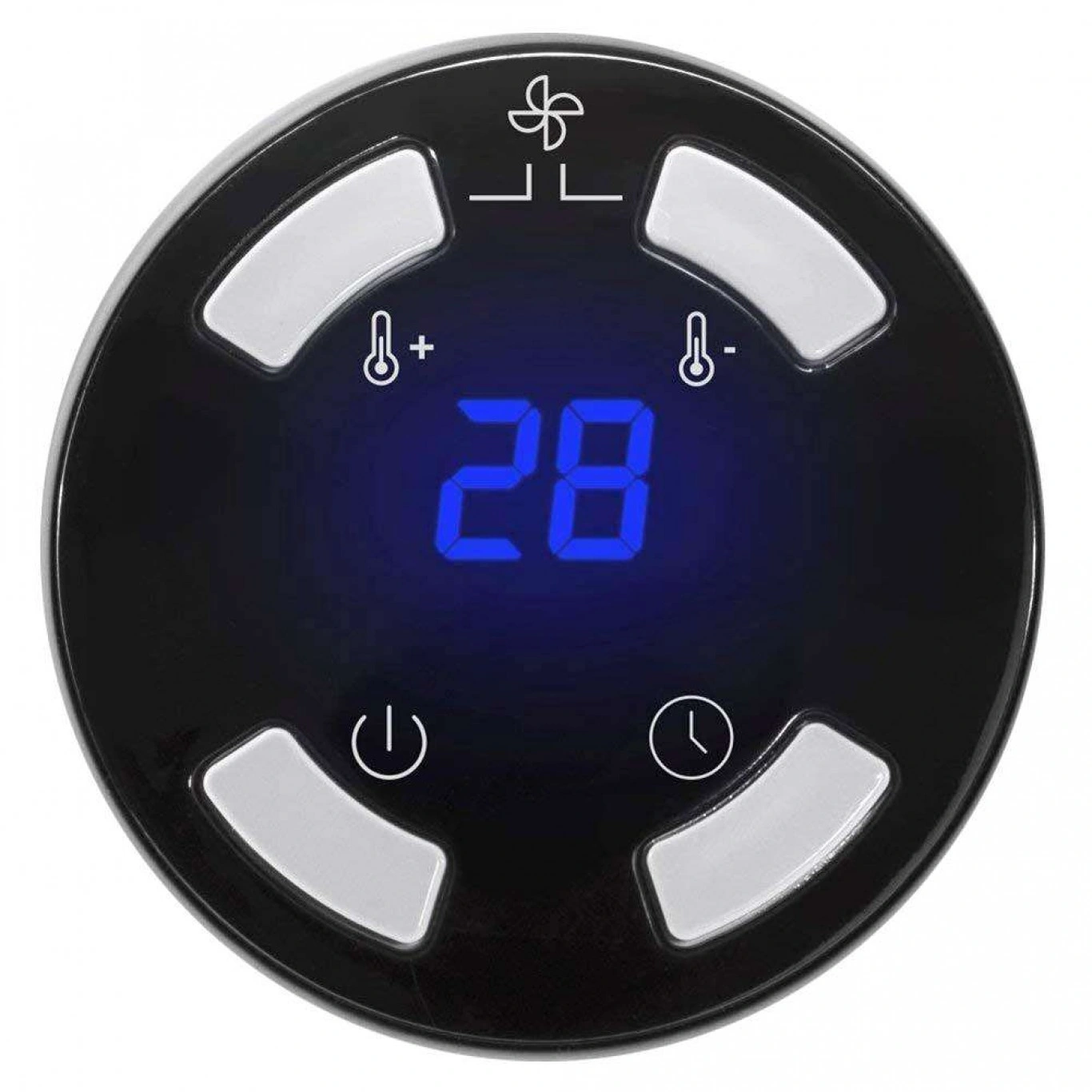 Είναι τηλεχειριζόμενο και διαθέτει θερμοστάτη, χρονοδιακόπτη 1-12 ώρες, οθόνη LED και ρυθμιζόμενη πρίζα.
