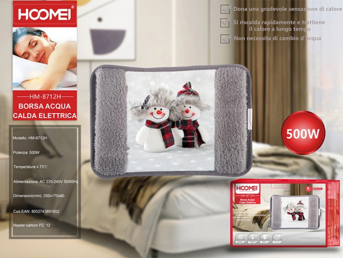 Ηλεκτρική Θερμοφόρα Γενικής Χρήσης 500W Hoomei HM-8712H Χιονάνθρωποι Γκρι 25x17x6cm