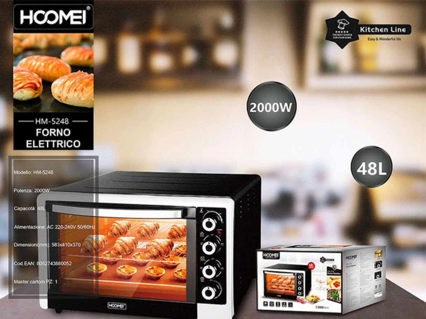 Ηλεκτρικό φουρνάκι HM-5248, της εταιρείας Hoomei, με ισχύ 2000 Watt. Η χωρητικότητα του είναι 48 λίτρα και μπορεί να χρησιμοποιηθεί ως βοηθητικός φούρνος για να ζεστάνετε ή να ψήσετε γρήγορα μικρές ποσότητες φαγητού.