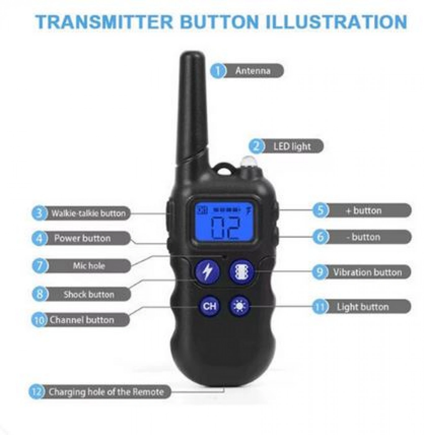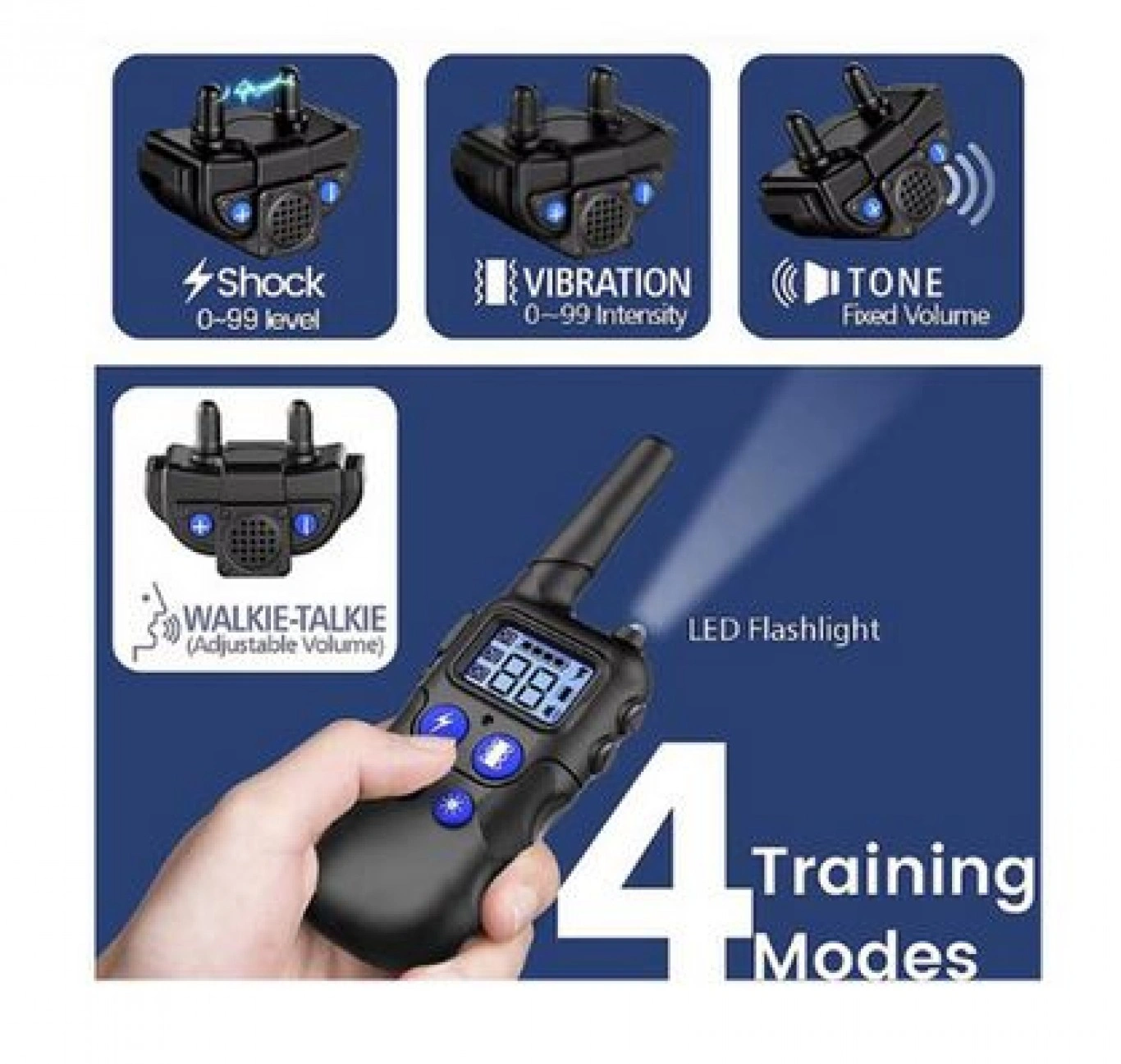 • Εμβέλεια έως και 2000 μέτρα• Φωνητική λειτουργία τύπου Walkie Talkie με 5 επίπεδα έντασης• Ρύθμιση στατικού ηλεκτρισμού από 1 έως 99 επίπεδα• Ρύθμιση δόνησης από 1 έως 99 επίπεδα• Προειδοποιητικός ήχος σε 1 επίπεδο• Ενσωματωμένος φακός LED στο τηλεχειριστήριο• Ένας πομπός μπορεί να χειρίζεται έως 3 κολάρα ταυτόχρονα• Επαναφορτιζόμενο τηλεχειριστήριο και κολάρο• Ρυθμιζόμενο λουρί 75 εκ. με ασφαλές κούμπωμα