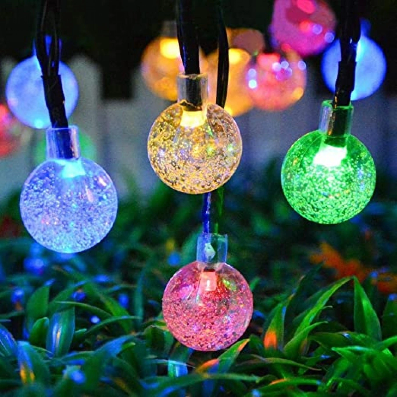 Ηλιακά Bubble Λαμπάκια 4.2m Χριστουγεννιάτικα Πολύχρωμου RGB Φωτισμού με 8 Προγράμματα – Φωτάκια 30 LED Εξωτερικού Χώρου με Φωτοβολταϊκό Πάνελ